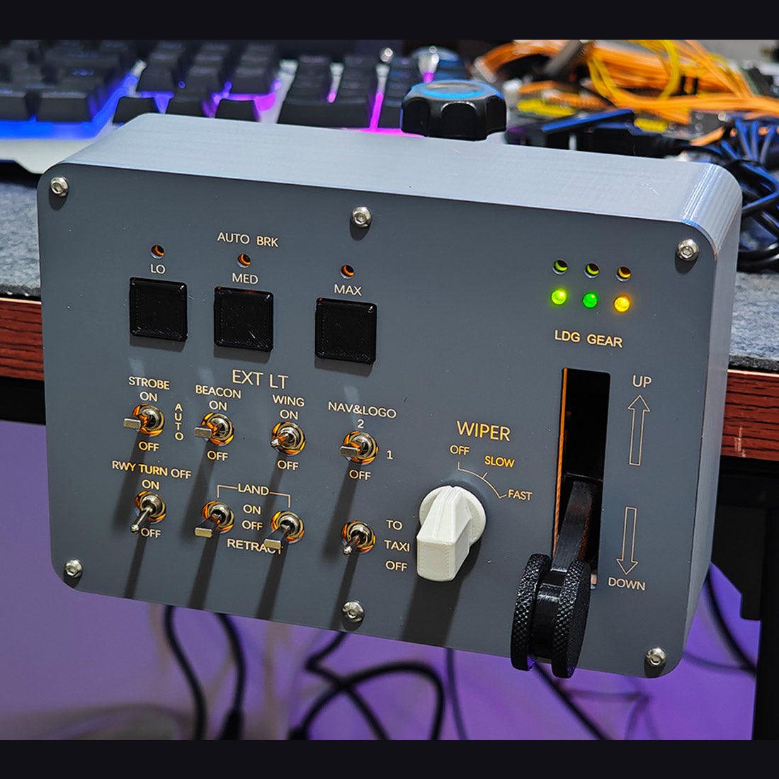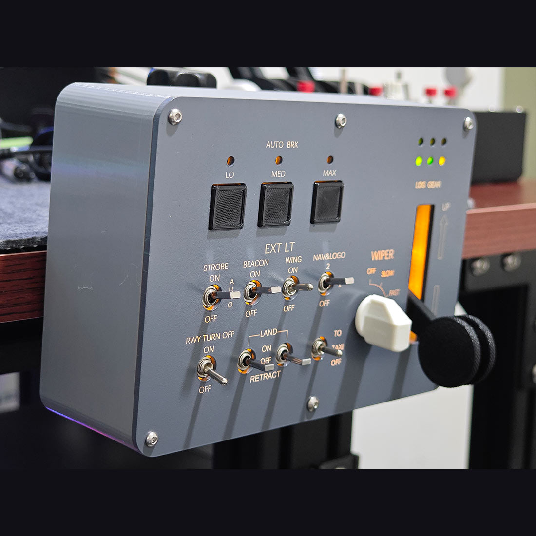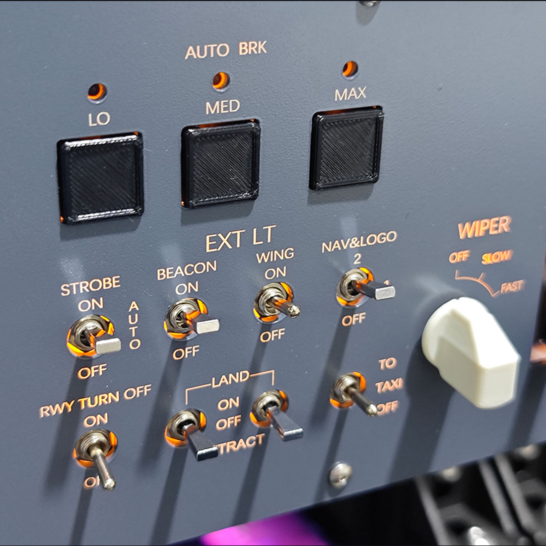 Realistic Cockpit Controls: Features dedicated external lighting switches, an auto brake button, captain-side wiper switch, and a precision landing gear lever, delivering an authentic and immersive flight simulation experience.