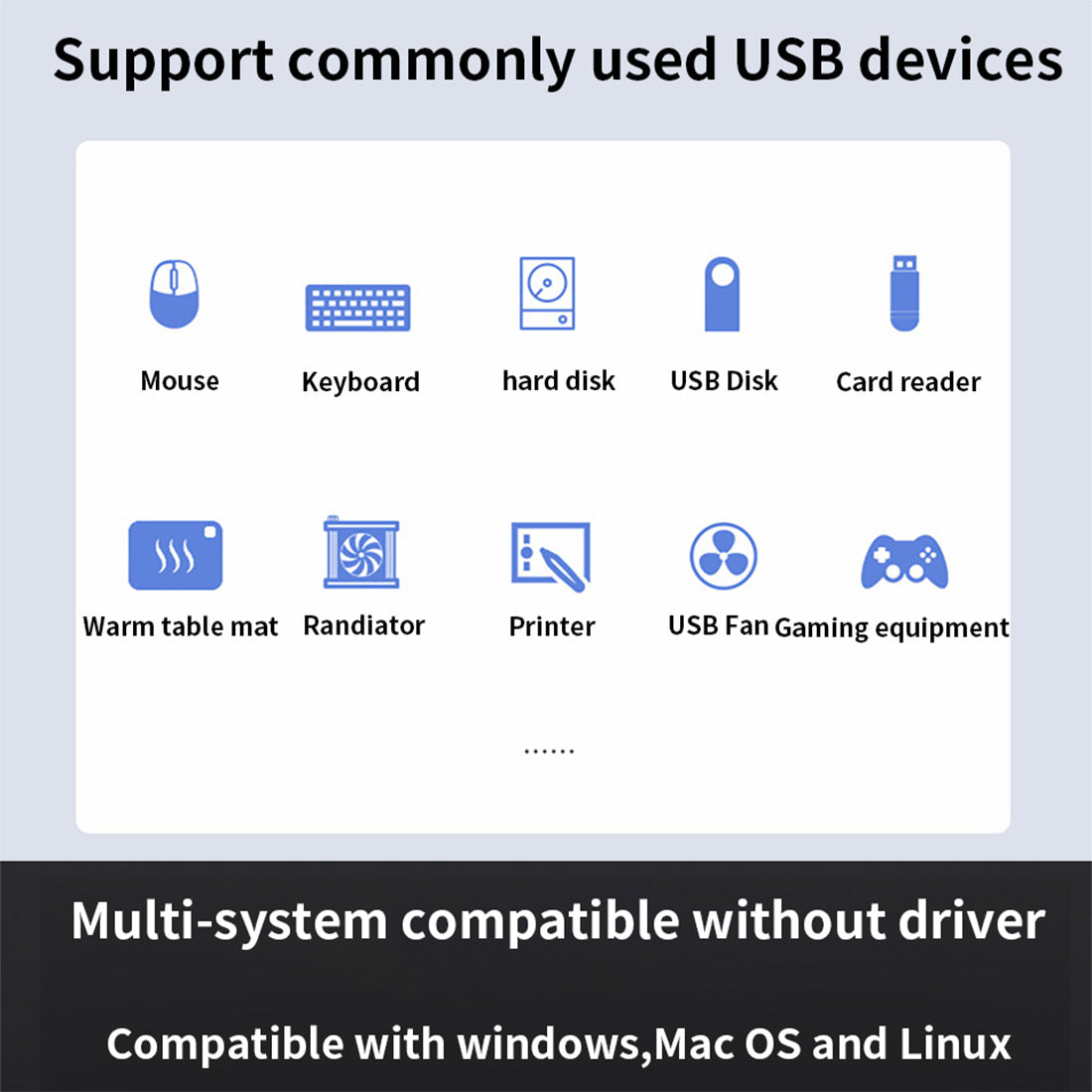 1. LED indicator design, control the working status of each USB device.