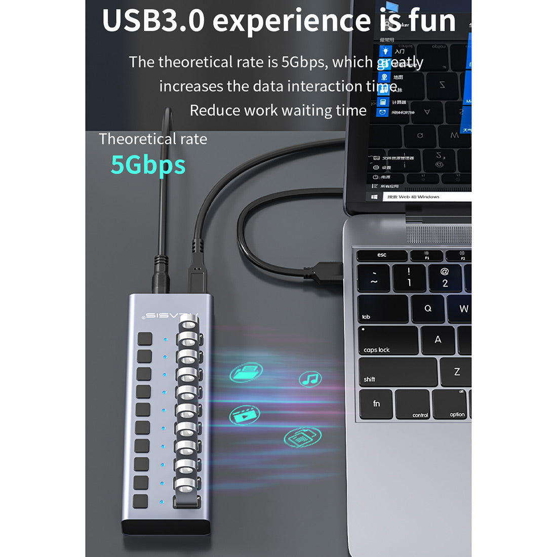 4. 16-port design to help you easily solve the trouble of less interface, reasonable spacing design, no conflict between plucking and inserting, can avoid the embarrassment of unable to insert.