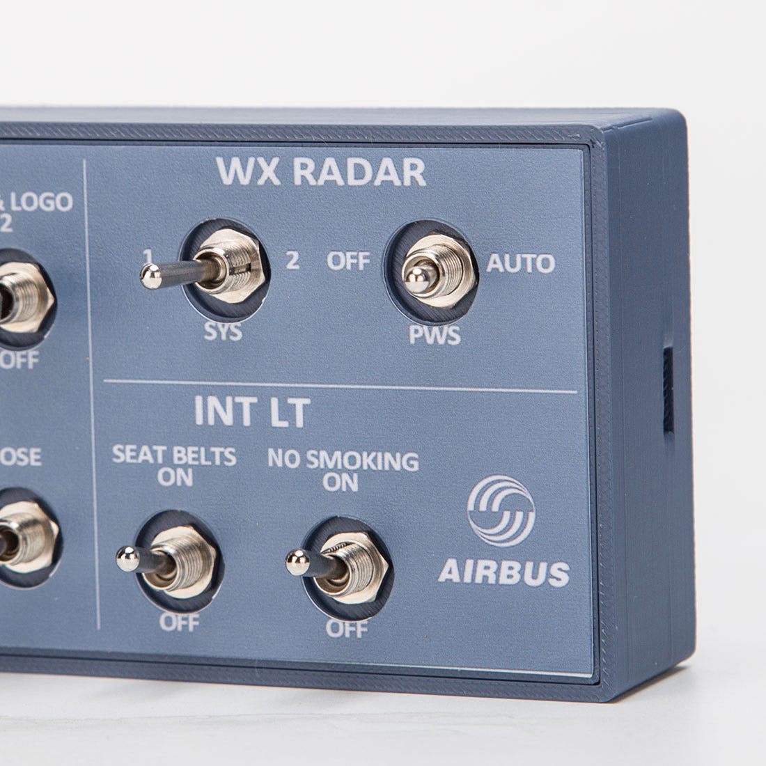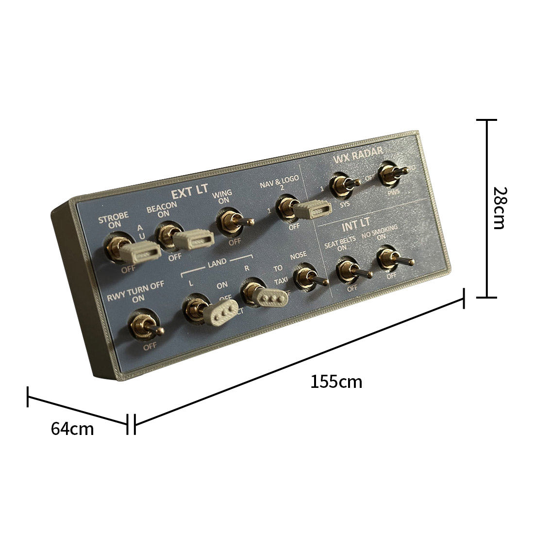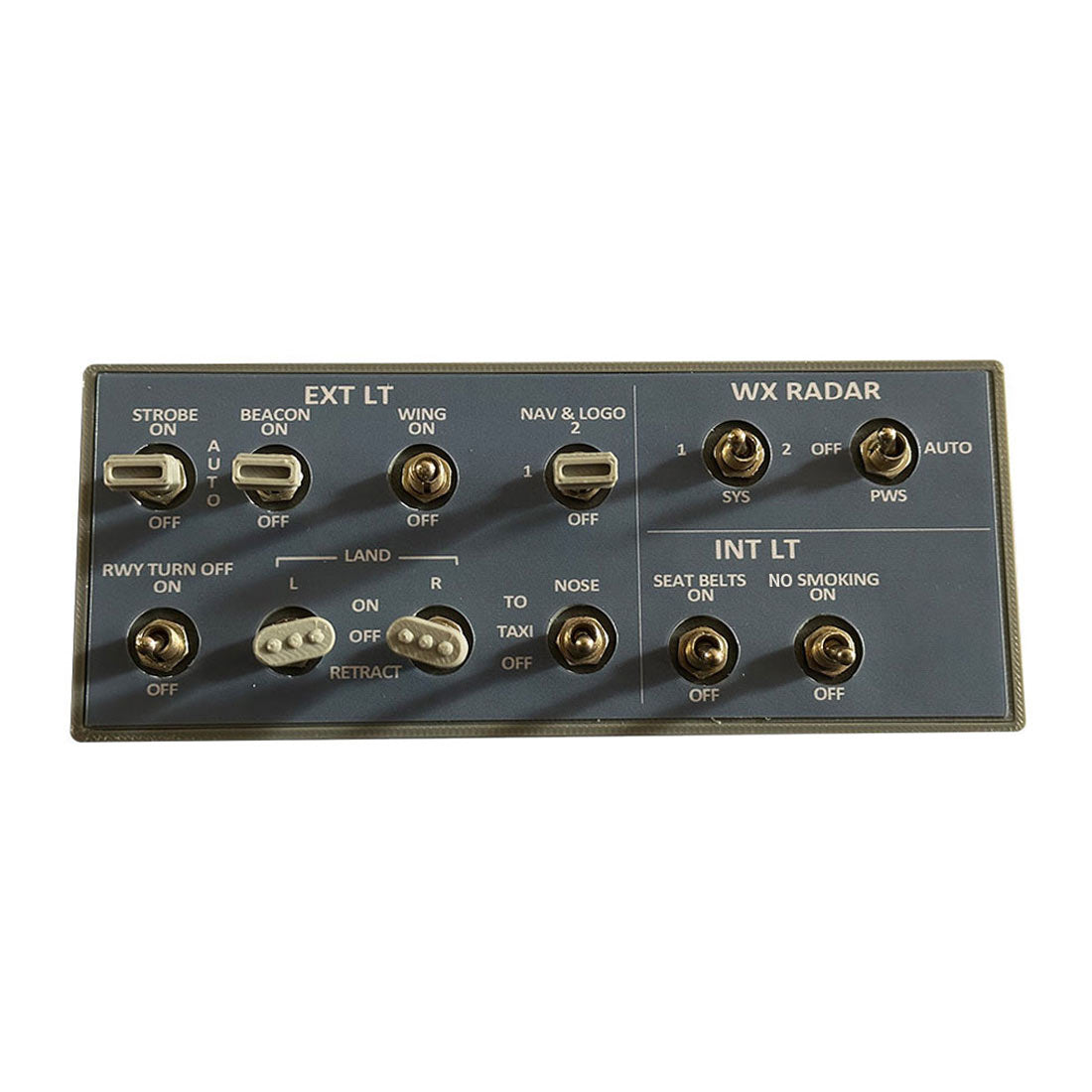 .Functional Dual-Position Switches: The panel includes dual-position toggle switches for key functions such as Terrain Radar, Windshear, Seatbelt Sign, and No Smoking indicator.