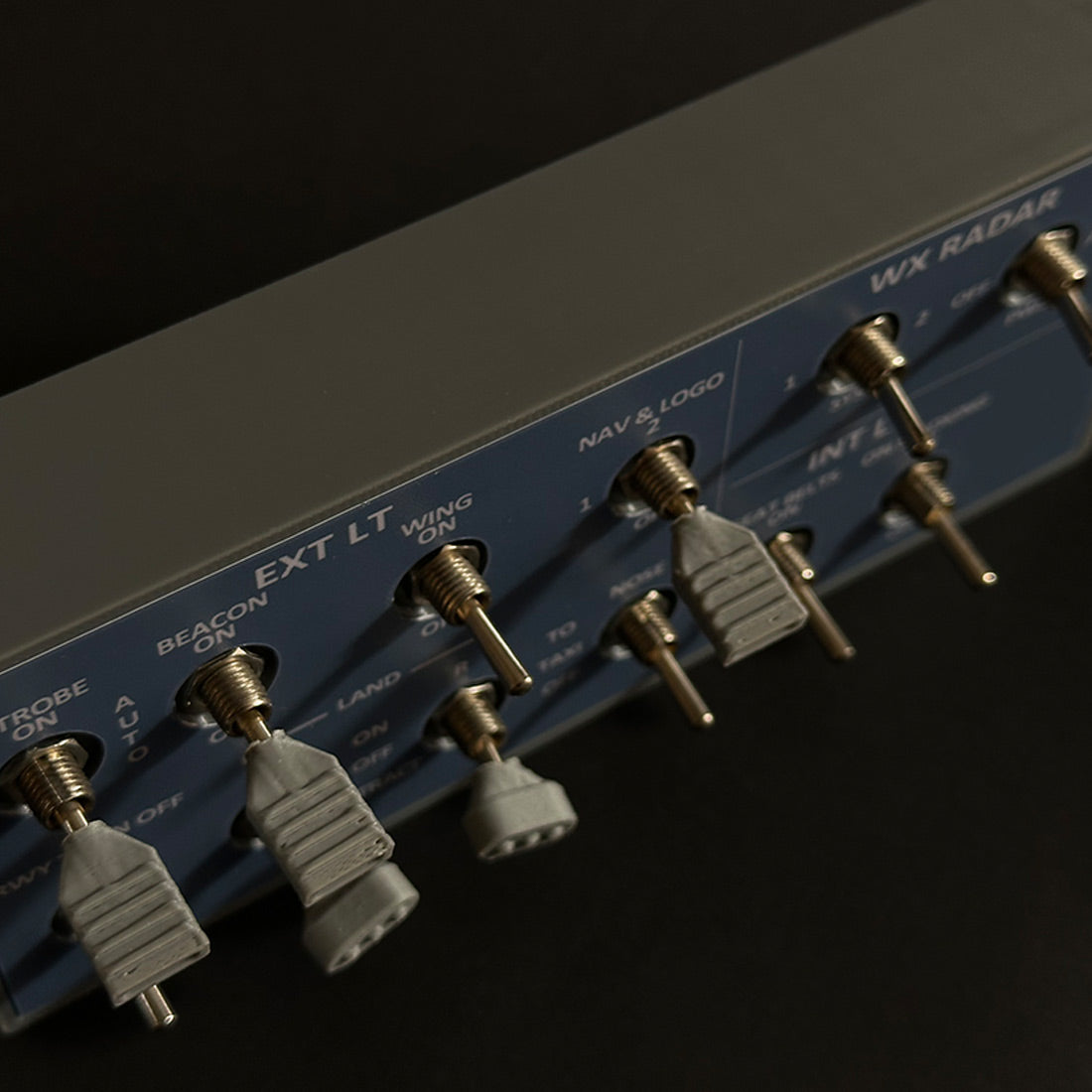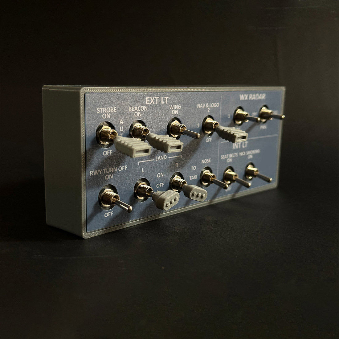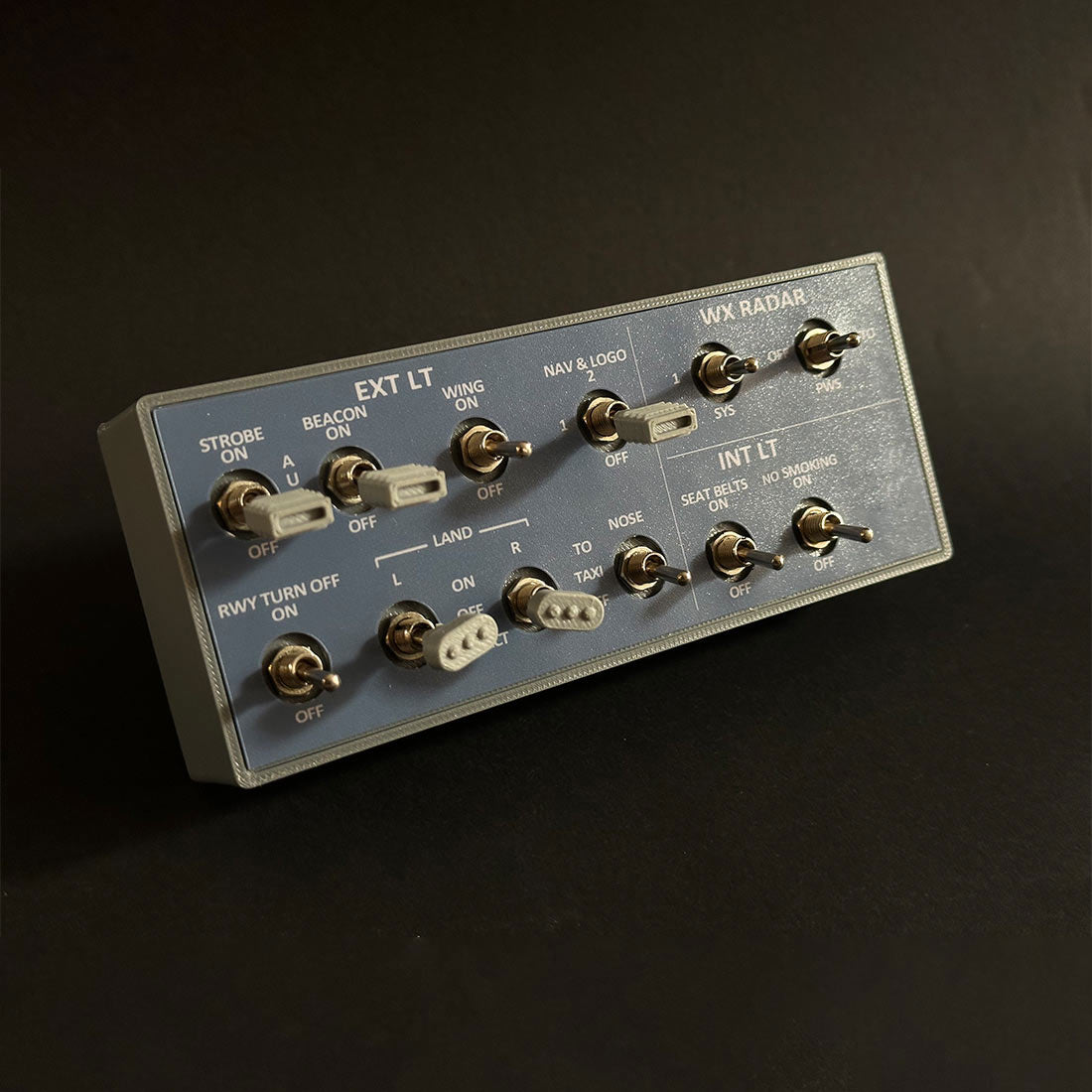 .Functional Dual-Position Switches: The panel includes dual-position toggle switches for key functions such as Terrain Radar, Windshear, Seatbelt Sign, and No Smoking indicator.