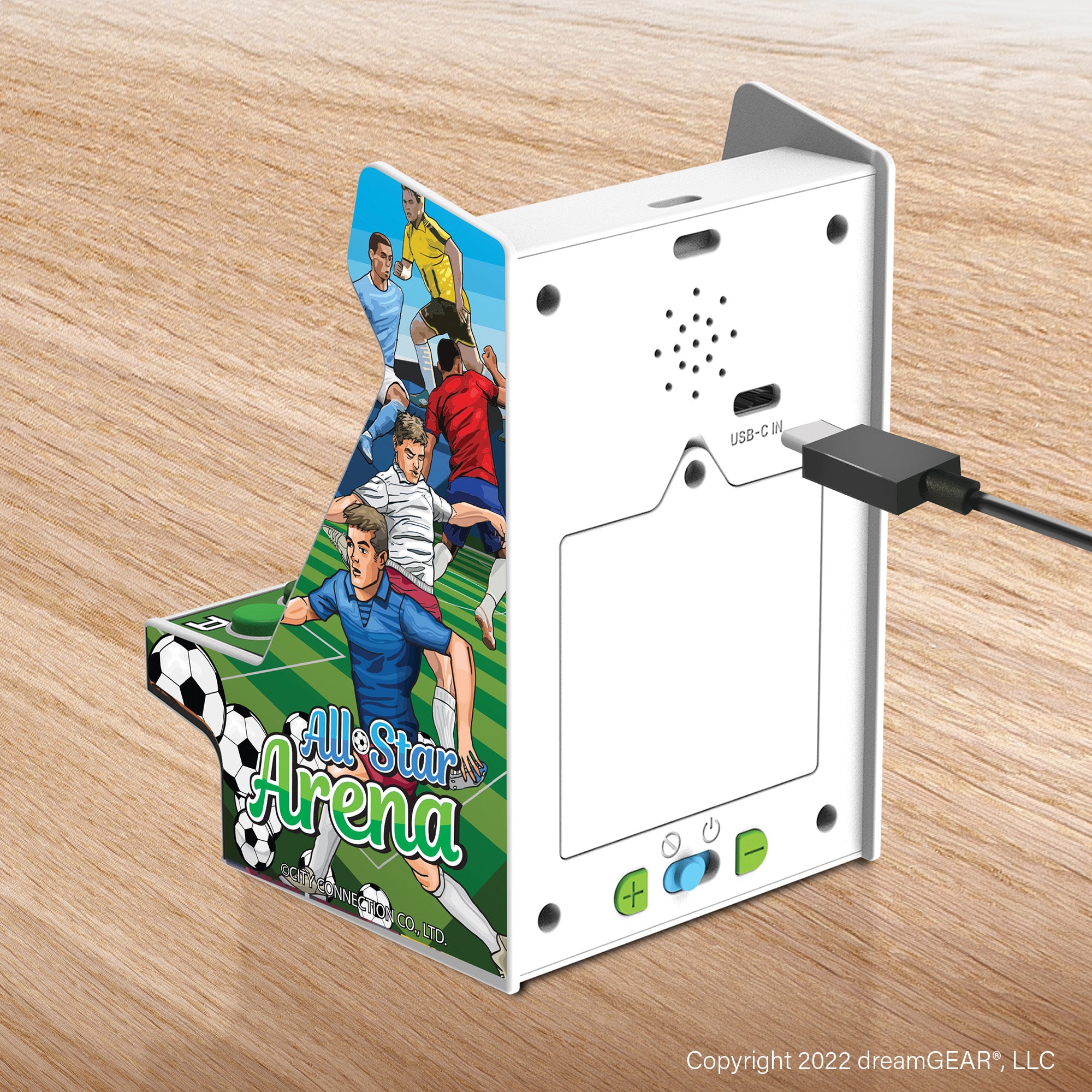 Includes fully playable versions of GOAL!™, BASES LOADED™ 1,2,3 & 4, RACKET ATTACK™ and HOOPS™. The All-Star Arena Nano Player features a full color 2.4” screen to brightly display all 7 titles and is fine-tuned for hours of play through its emphasis on ergonomics and compact design.