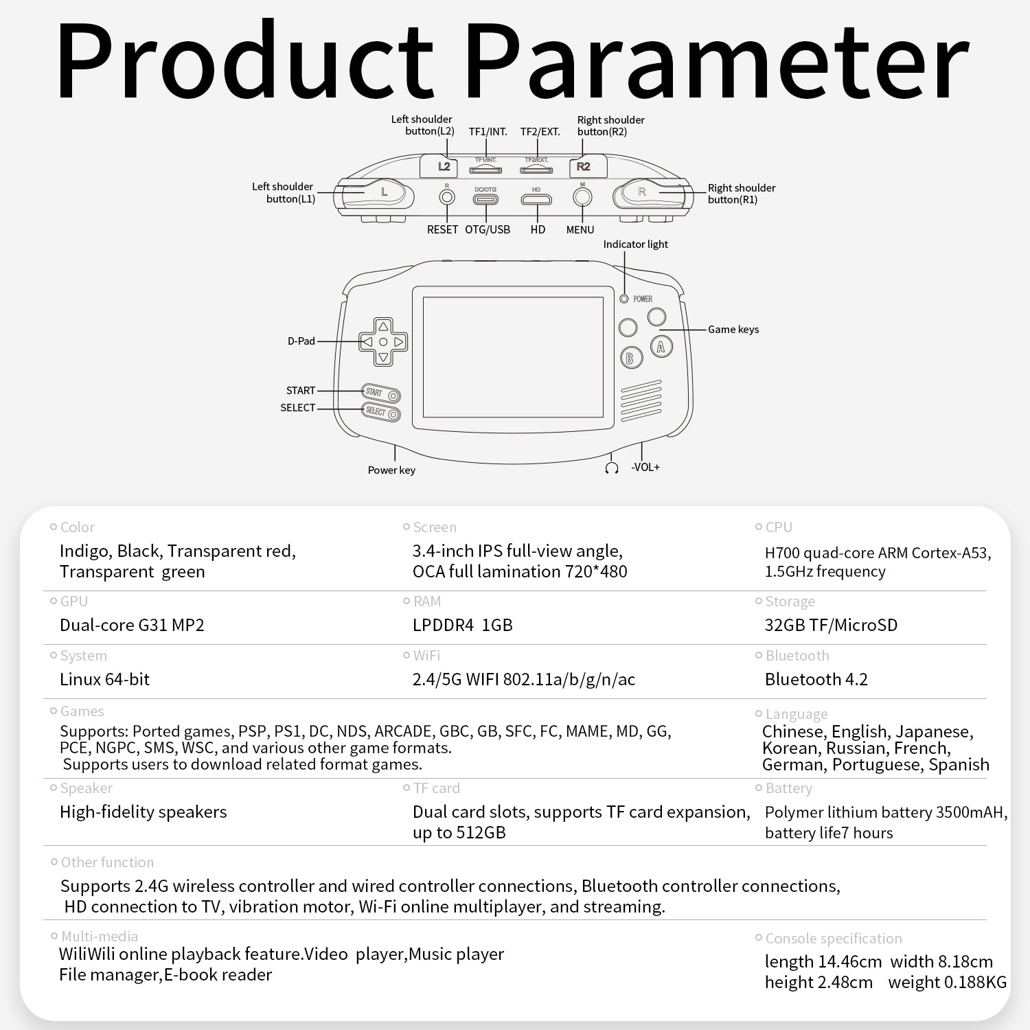 .High-Definition Display: Enjoy vivid, crisp visuals on the 3.4-inch IPS screen with a 720x480 resolution. The OCA full lamination ensures excellent viewing angles for a truly immersive retro gaming experience.