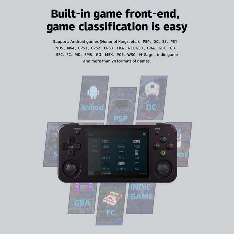 .Support Multiple Games: Compatible with open source Linux system, the handheld game console supports vibration motors, Android games, PSP, DC, SS, PS1, NDS, N64, CPS1, CPS2, CPS3, FBA, NEOGEO, GBA, GBC, GB, SFC, FC, MD, SMS, GG, MSX, PCE, WSC, N-Gage, port games, etc. Users can download games in related formats.
