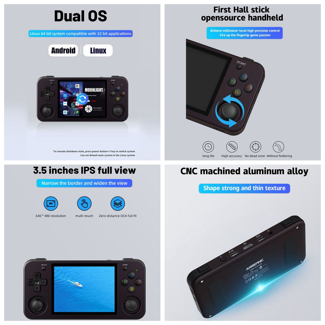 .3.5-Inch IPS Screen: The 3.5-inch high-definition IPS screen offers extremely clear screen effects, along with tempered glass that withstands scratches and drops with ease to provide enhanced eye protection in an exciting gaming experience..Upgraded Chip: The video game console adopts RK3566 quad-core 64-bit Cortex-A55 chips to avoid frame loss, which is conducive to running and smoother in-game screens.