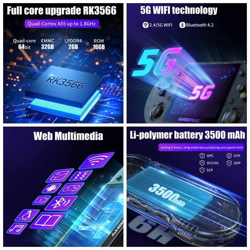 [4] Free choice of dual-system Android/Linux, RK3566 quad-core 64-bit processor, Cortex-A55 main frequency up to 1.8GHz, the game runs without pressure.