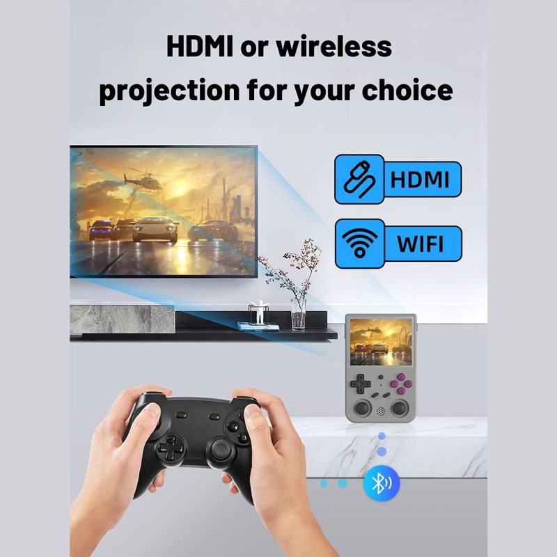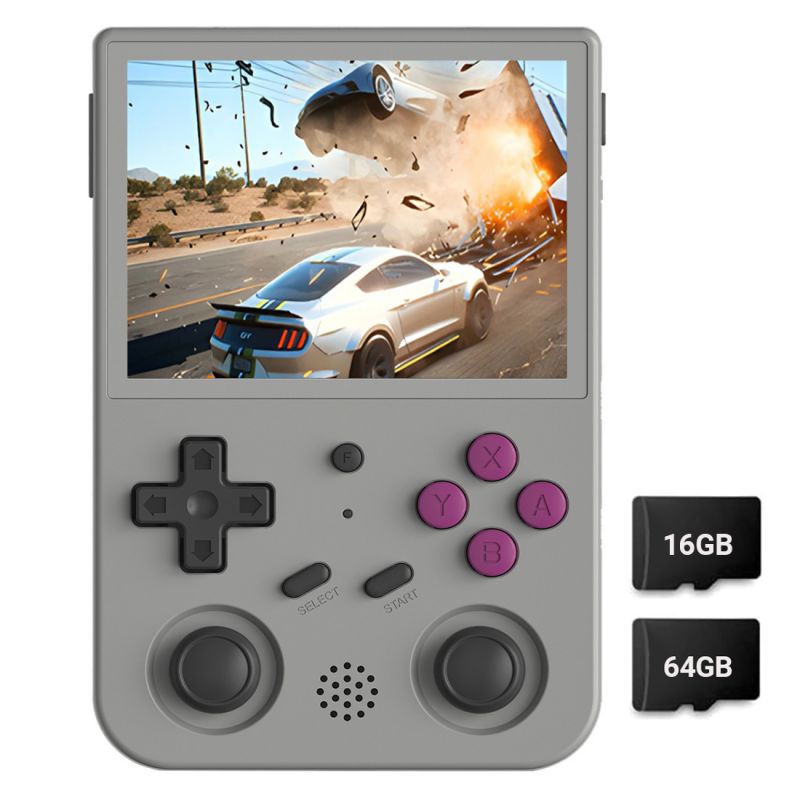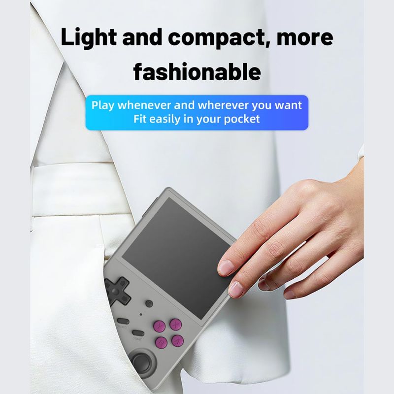 .3.5-INCH IPS SCREEN: Features 3.5-inch high-definition IPS screen for pretty clear display effect. The toughened glass for dual protection is scratch-and drop-resistant, providing an exciting gaming experience and enhanced eye protection..UPGRADE CHIP: The video game console adopts RK3566 quad-core 64-bit Cortex-A55 chip, which avoids frame loss in the game and makes the game picture smoother.