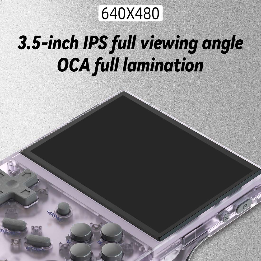 .Featuring a high-definition 3.5-inch IPS display with OCA full lamination technology, delivering 640*480 resolutions for wide-angle viewing. Powered by a Cortex-A53 processor for smooth emulation of retro games.
