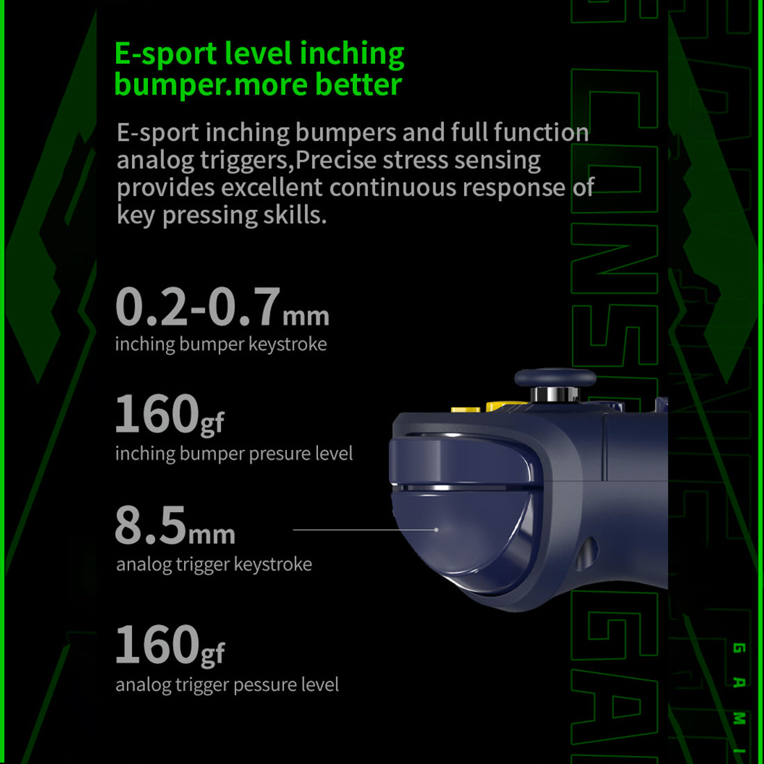 .Equipped with esports-grade thumbsticks to meet personalized needs including auto-calibration anti-drift, delicate control, precise direction and speedy turning.