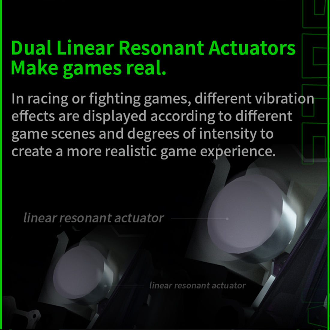 .Dual linear vibration motors for immersive gaming impact. Experience varying vibration effects in racing or fighting games, creating a more realistic and engaging gaming experience.