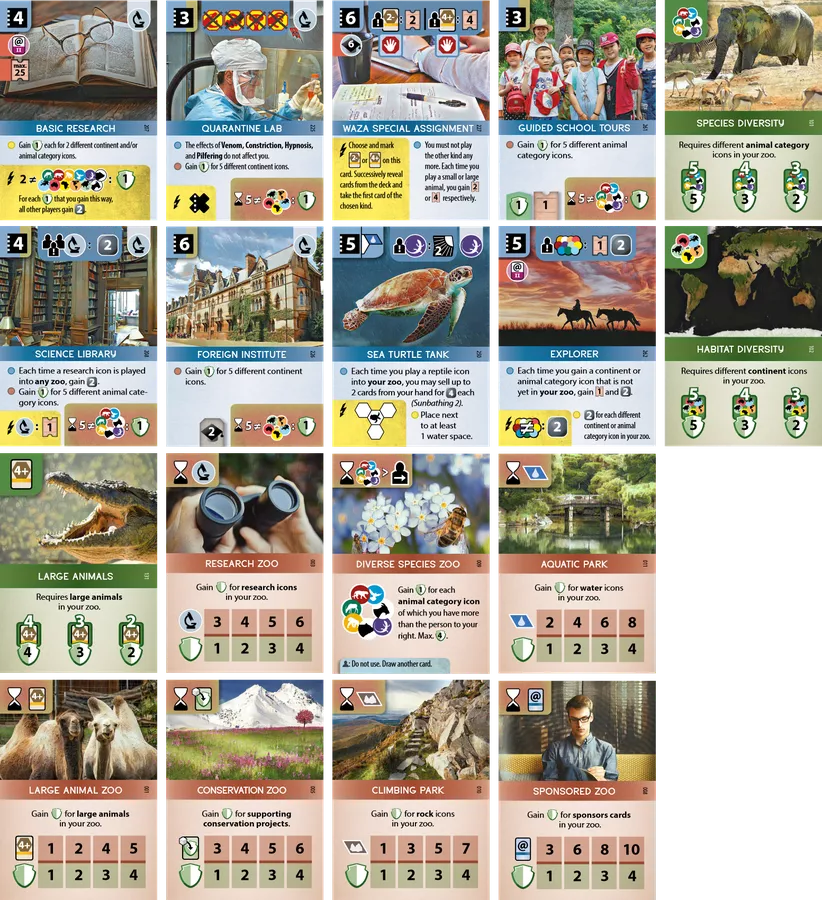 A new fourth university is available on the association board, and if you take it, you claim one of six special universities from the reserve that feature one research icon and one of six animal icons. When you take this registry, you reveal cards from the top of the deck and keep the first revealed card with an animal icon that matches your chosen university.