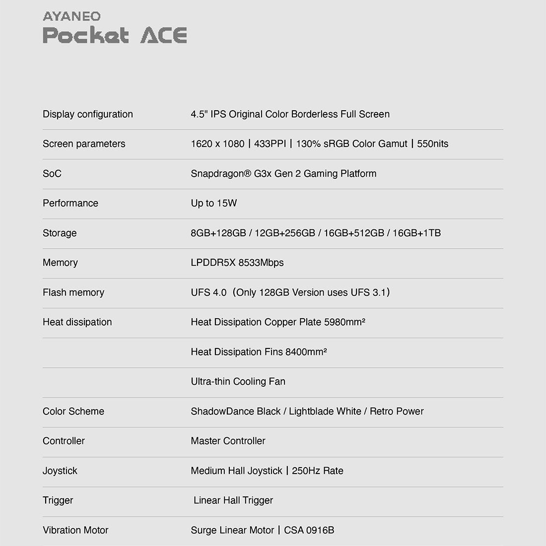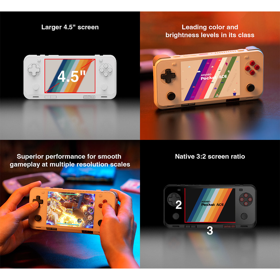 .Compact & Immersive Display: The AYANEO Pocket ACE features a 4.5-inch full-view IPS display with a 1620×1080 resolution, ultra-high 433 PPI, and 130% sRGB color gamut. Its 3:2 aspect ratio provides expanded vertical space, making it perfect for various game types in a compact, portable form.