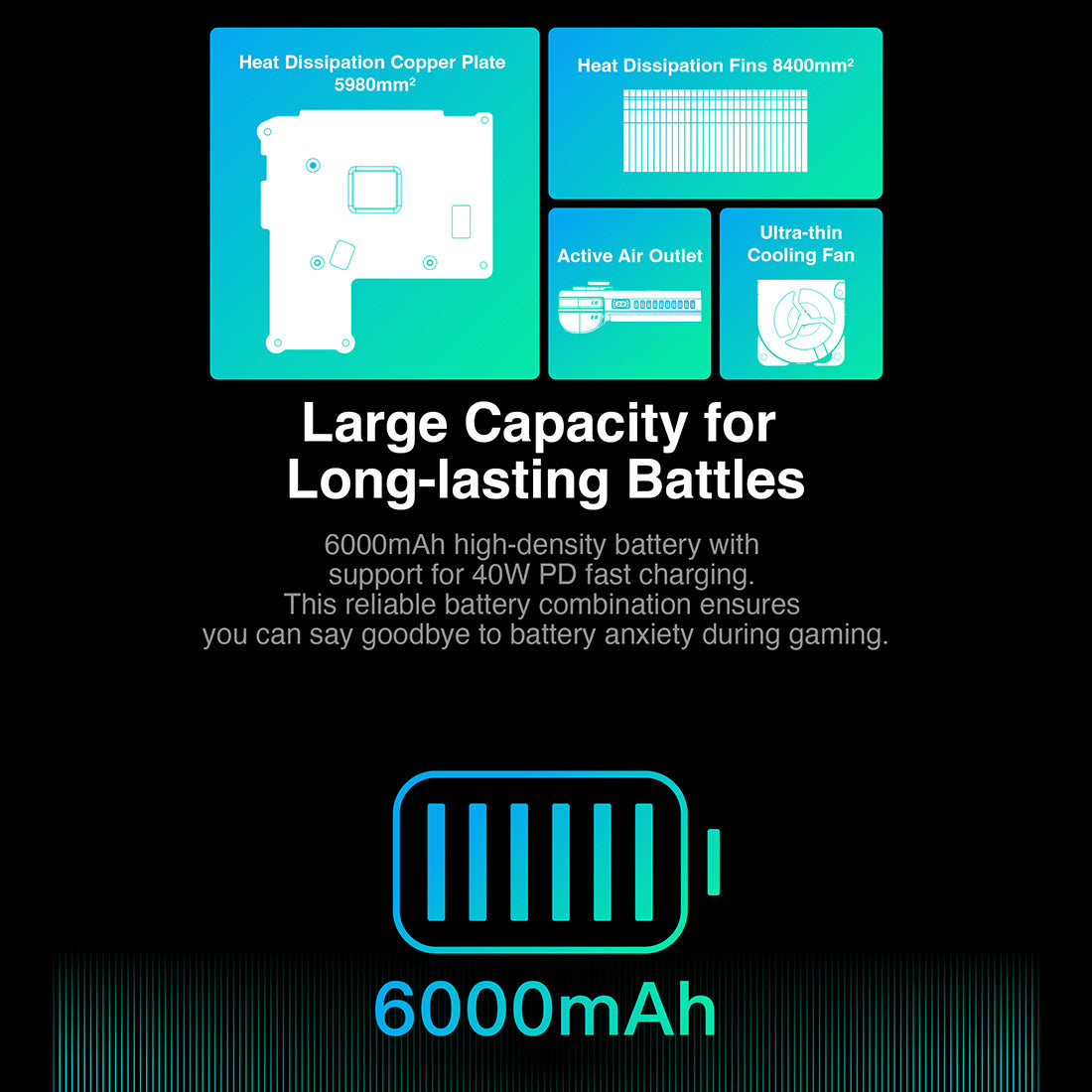 .Fast Charging & Long Battery Life: Equipped with a 6000mAh high-capacity battery and 40W fast charging, the Pocket ACE ensures extended gaming sessions without interruption.