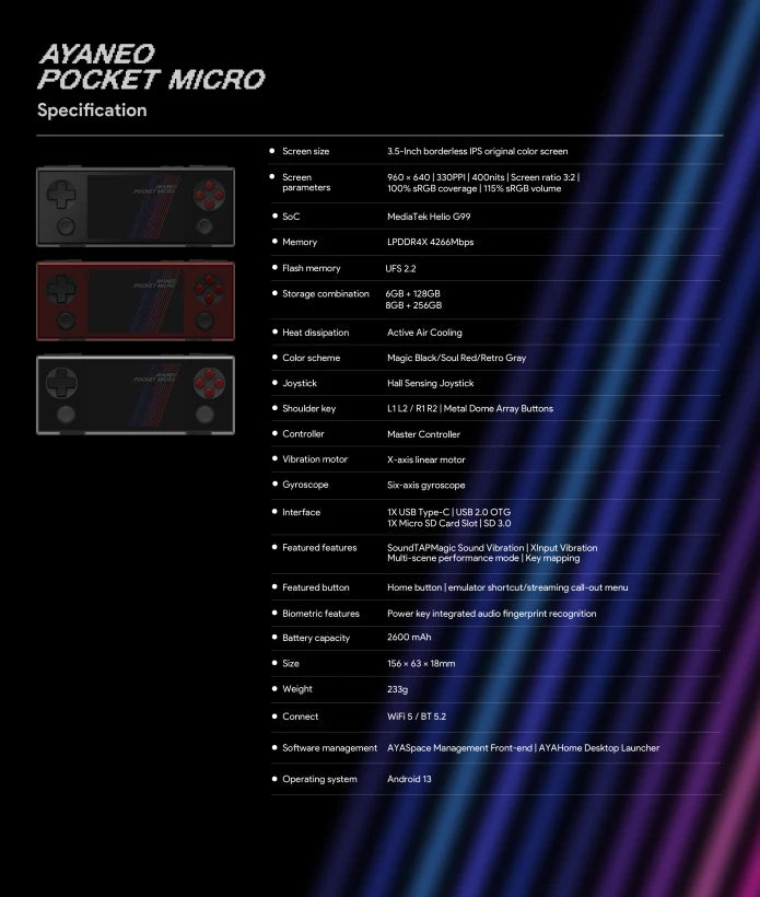 Ayaneo Pocket Micro 3:2 Handheld Android Gaming Console (8G+256G)