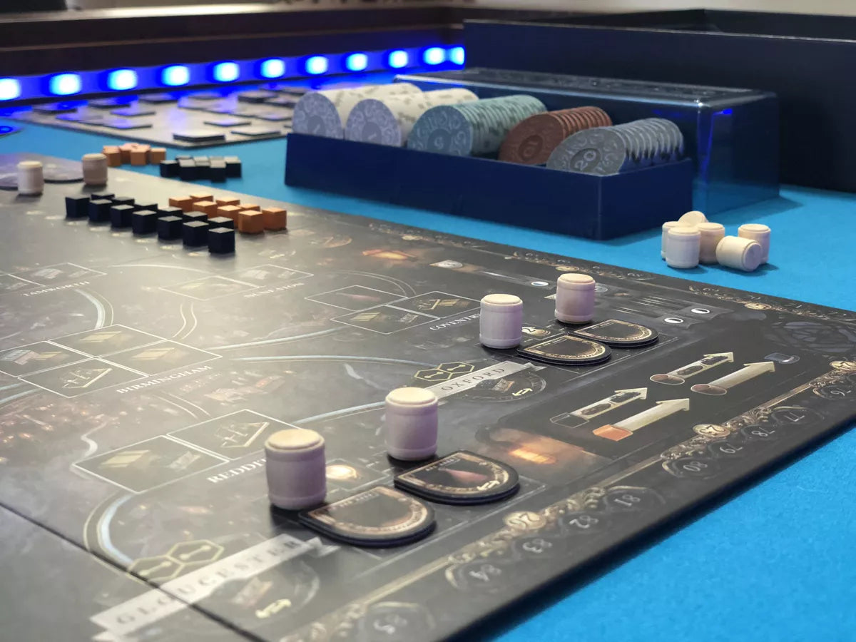 It offers a very different story arc and experience from its predecessor. As in its predecessor, you must develop, build, and establish your industries and network, in an effort to exploit low or high market demands. The game is played over two halves: the canal era (years 1770-1830) and the rail era (years 1830-1870). To win the game, score the most VPs. VPs are counted at the end of each half for the canals, rails and established (flipped) industry tiles.