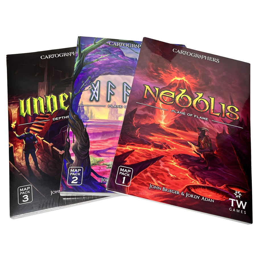 Cartographers: Map Pack Collection includes three new maps featuring thematic twists and gameplay additions to expand your game of Cartographers or Cartographers Heroes. The three maps (1: Nebblis, 2: Affril, and 3: Undercity) were previously sold separately in their own packaging but are now combined into a single boxed collection.