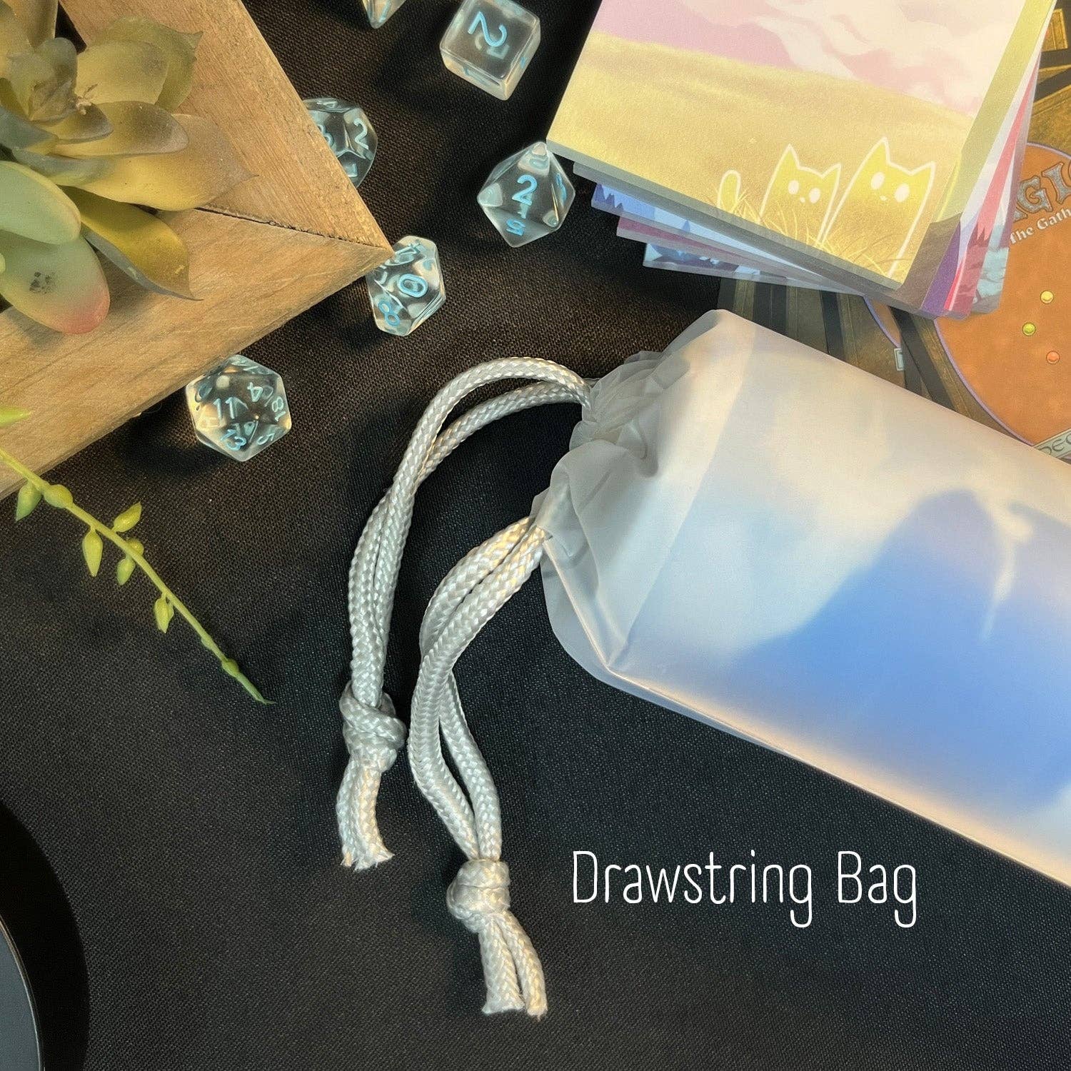 Standard 24' x 14' playmat featuring a line of adventurous kitties on an aesthetic pink and purple snowy mountain background. These mats also work well as a large mouse pad for small laptops and tablets!High quality 2mm rubber (thicker than most other playmats!)Textured bottom helps the playmat stay in place.Stitched edges.Includes a frosted drawstring bag!Check out our MtG Token packs and Mousepads featuring the same artwork!All of our playmats come shipped in a frosted drawstring bag, and are also available flat in a plastic sleeve (with the drawstring bag still included!) If you'd prefer the flat shipping, just send me a message on Faire!