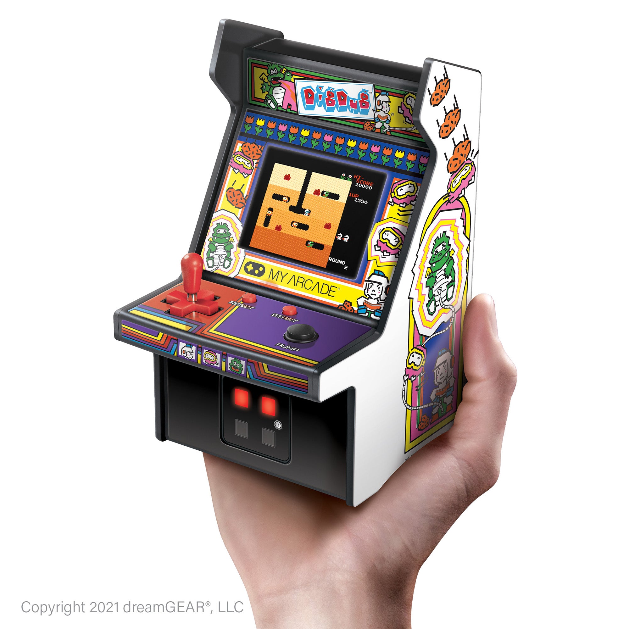 This MY ARCADE® Micro Player features the classic game by BANDAI NAMCO®, DIG DUGTM. Fygars and Pookas and falling rocks. Join DIG DUG™ on the ultimate adventure to vanquish underground monsters. Making his first appearance in Japan in 1982, the air-pump wielding hero has since become an arcade legend. MY ARCADE® Micro Players™ are 6.75' mini retro arcade machines that are licensed and collectible. They feature original artwork on the cabinet along with a 2.75' full color back-lit display and removable joystick. Micro Players™ are awesome for fans of retro games who love to play, collect, or display classic games.