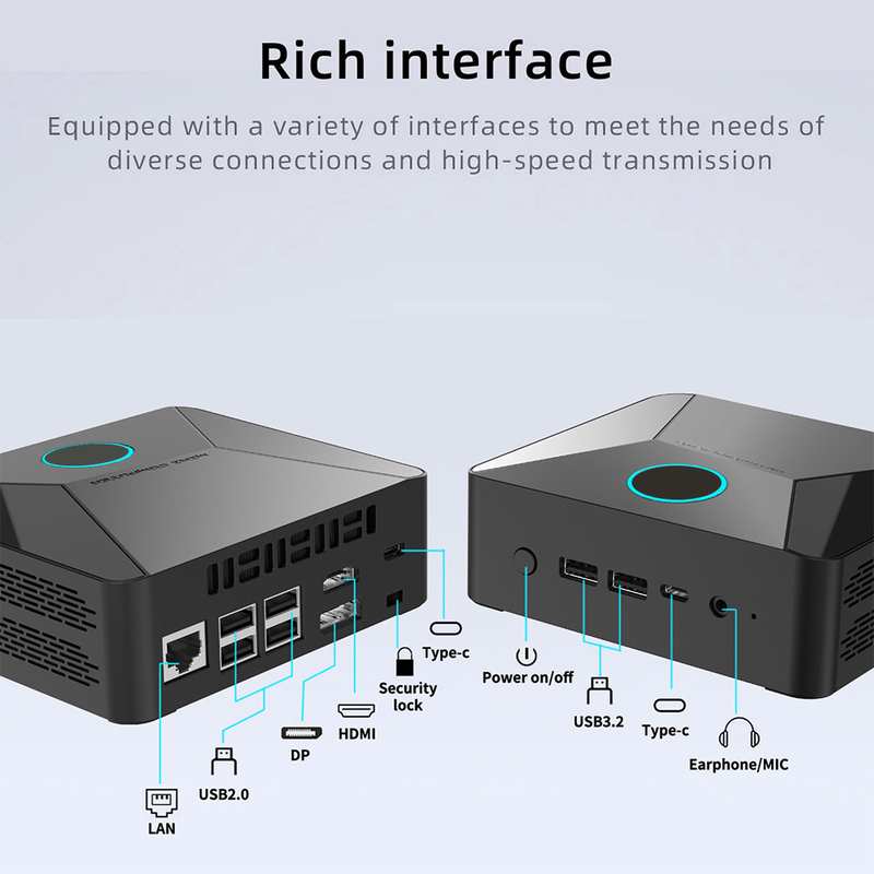.Mini PCs are compact computer hosts, significantly smaller in size compared to traditional desktop hosts. They are designed to be compact, lightweight, suitable for small spaces, or mobile environments..Equipped with powerful computing capabilities, advanced processors, high-capacity memory, and fast storage devices, supporting triple-display output and run various tasks, including office applications, media playback, and light gaming.
