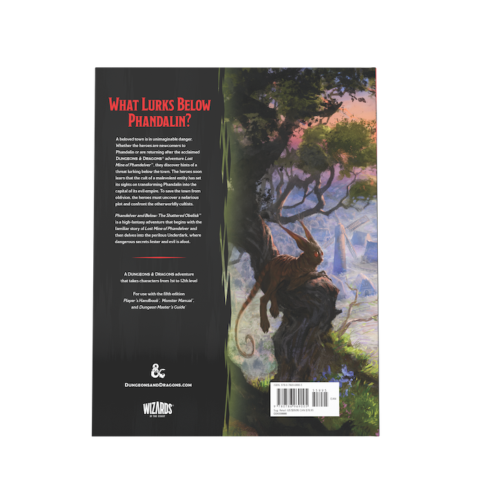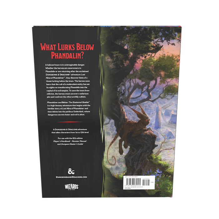 Phandelver and Below: The Shattered Obelisk is a high-fantasy adventure that begins in the beloved town of Phandalin as it faces unimaginable danger. Whether the heroes are newcomers to Phandalin or are returning after the acclaimed Dungeons & Dragons adventure Lost Mine of Phandelver, they discover hints of a threat lurking below the town. The heroes soon learn that the cult of a malevolent entity has set its sights on transforming Phandalin into the capital of its evil empire. To save the town from oblivion, the heroes must uncover a nefarious plot and confront the otherworldly cultists directly.