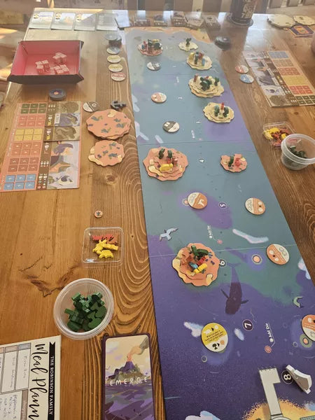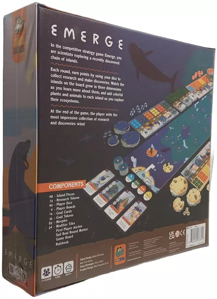 Each round, earn points by rolling your dice and using them to collect research and make discoveries. All players start with the same research board, however throughout the game you'll be able to modify your own board and change what you're researching. After 8 rounds, score points based on how flourished and biodiverse your islands are and varying research objectives.