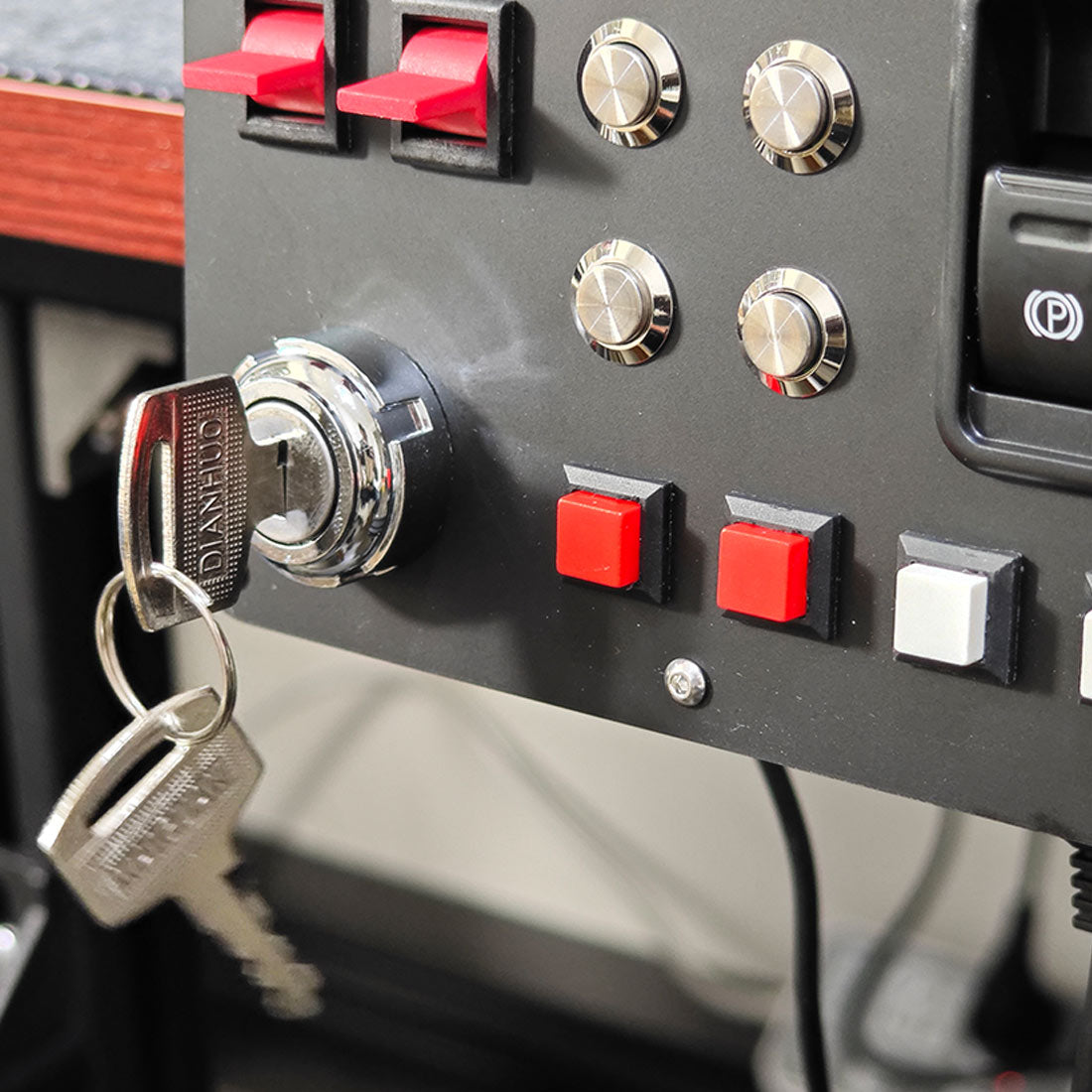 .Authentic Start/Stop Experience: Features a one-touch ignition switch that mimics a real vehicle: press once for power, press firmly downward to start the engine, and press again to shut off. Includes an electronic parking brake and multiple customizable switches for a truly personalized setup.