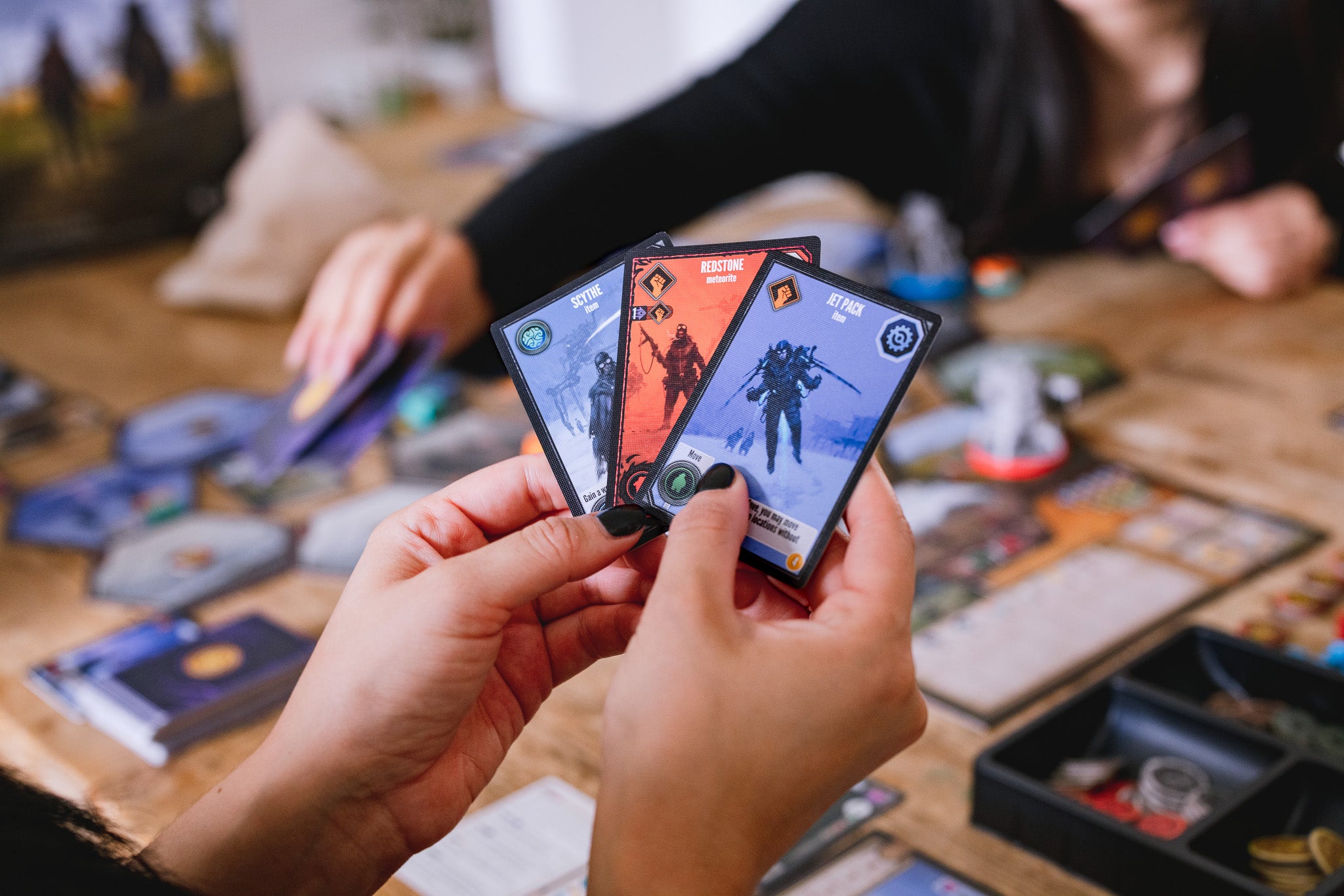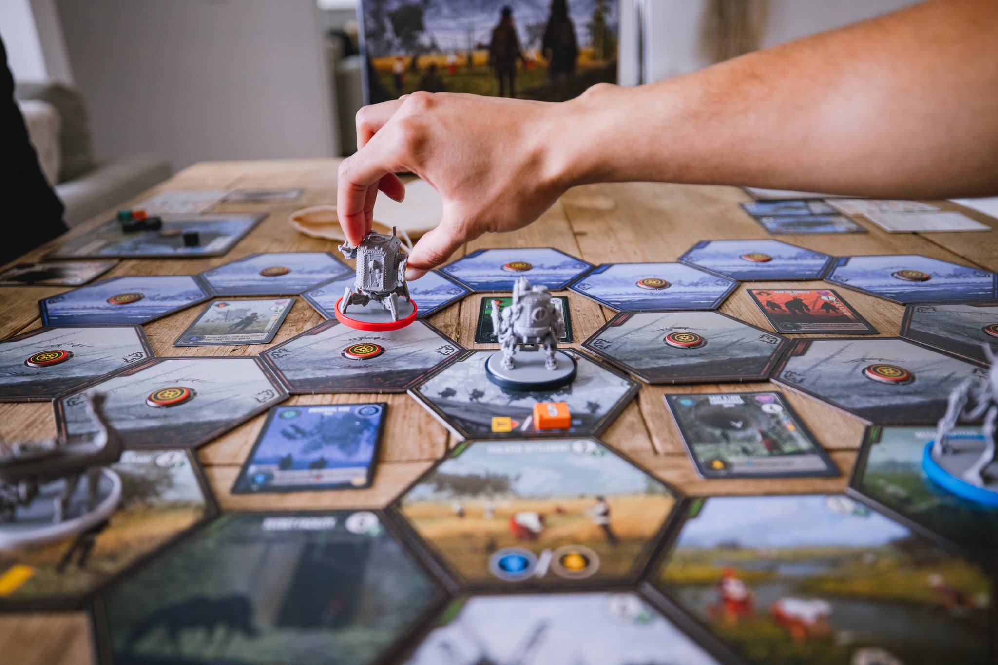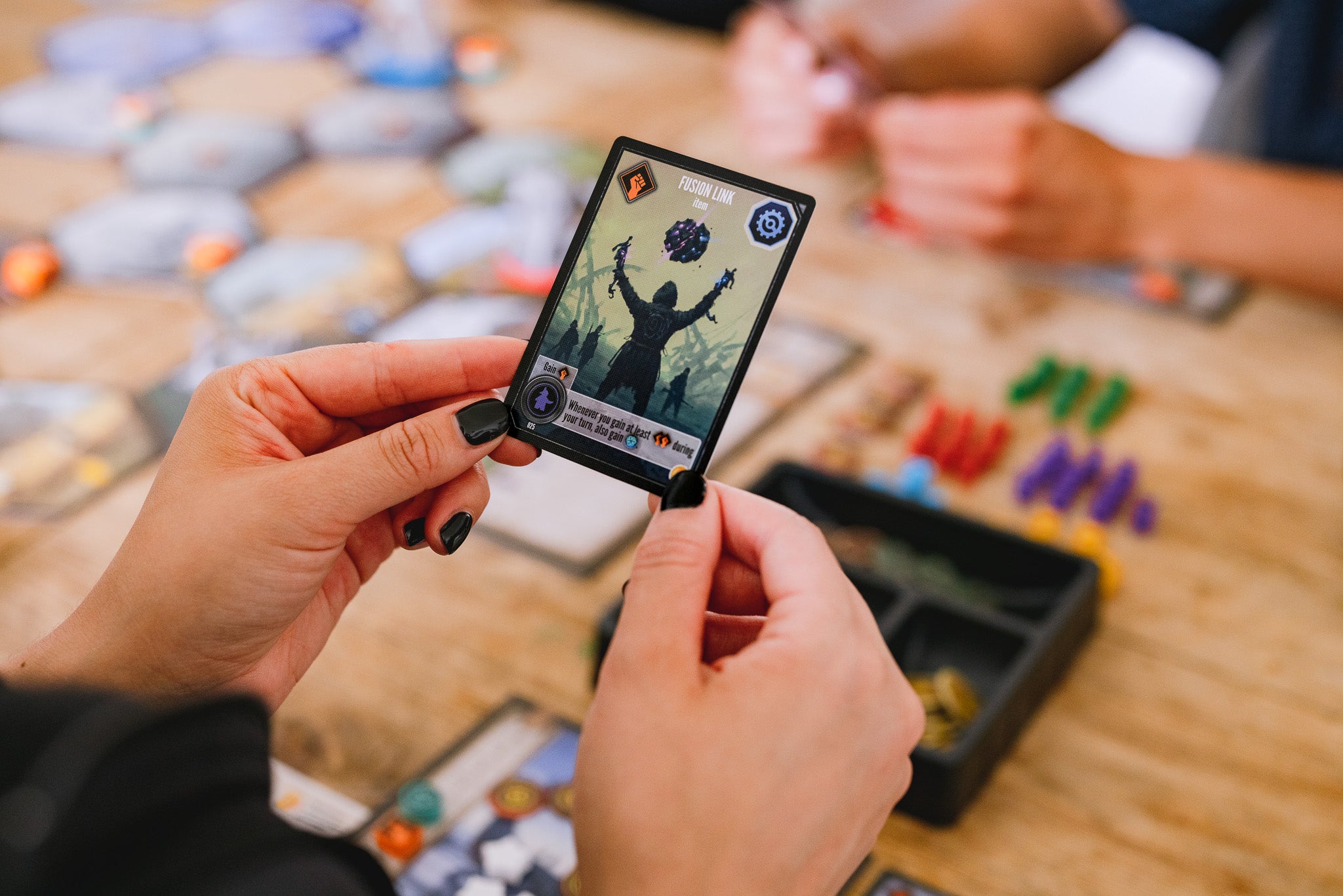 Expeditions is a competitive, card-driven, engine-building game of exploration. It is designed to evoke similar feelings to Scythe even though the mechanisms are different: Play cards to gain power, guile, and unique worker abilities; move your mech to mysterious locations and gain cards found among the tiles; use workers, items, meteorites, and quests to enhance your mech; and use power and guile to vanquish corruption.