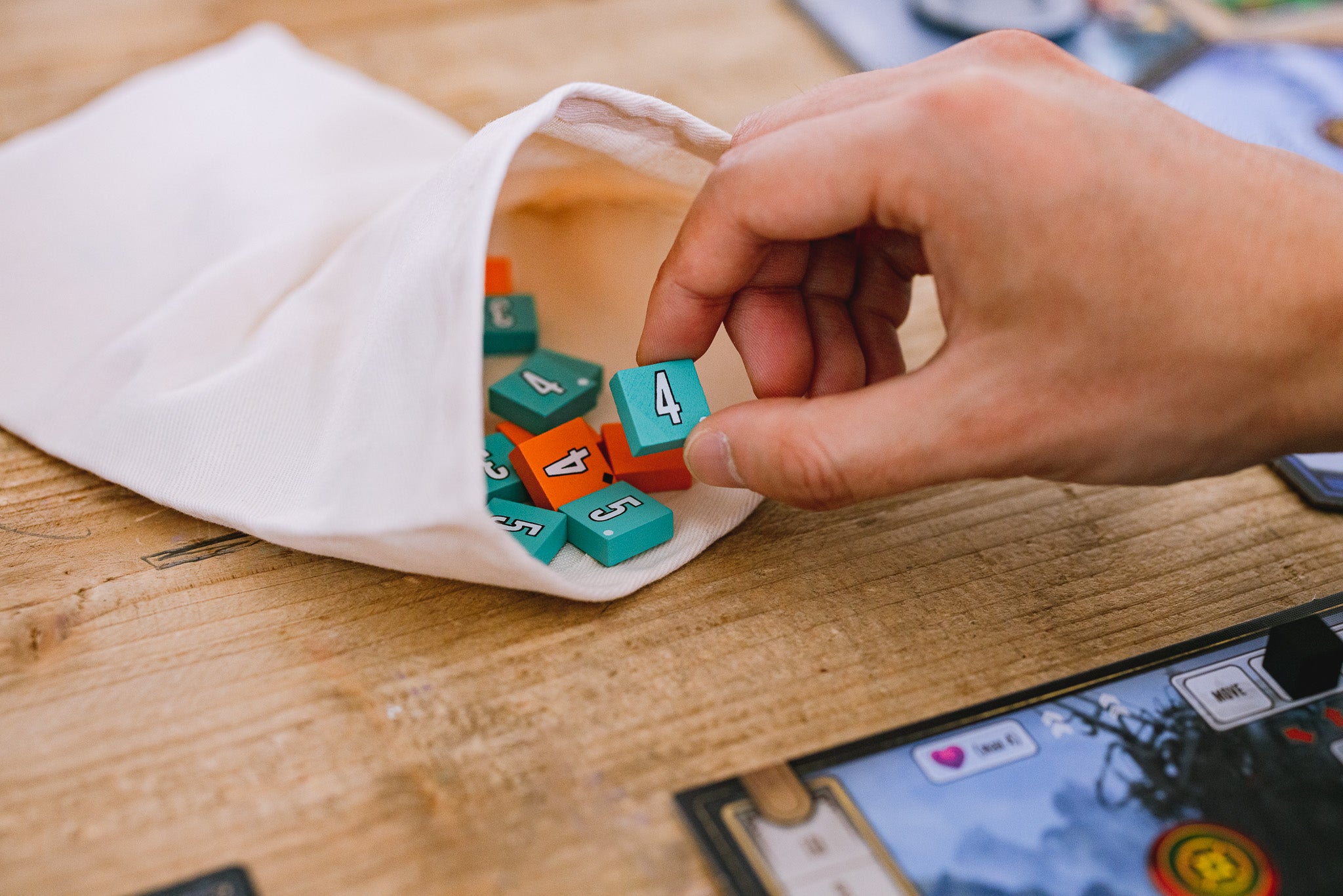 - 1 cloth bag filled with 36 silkscreen printed corruption tiles