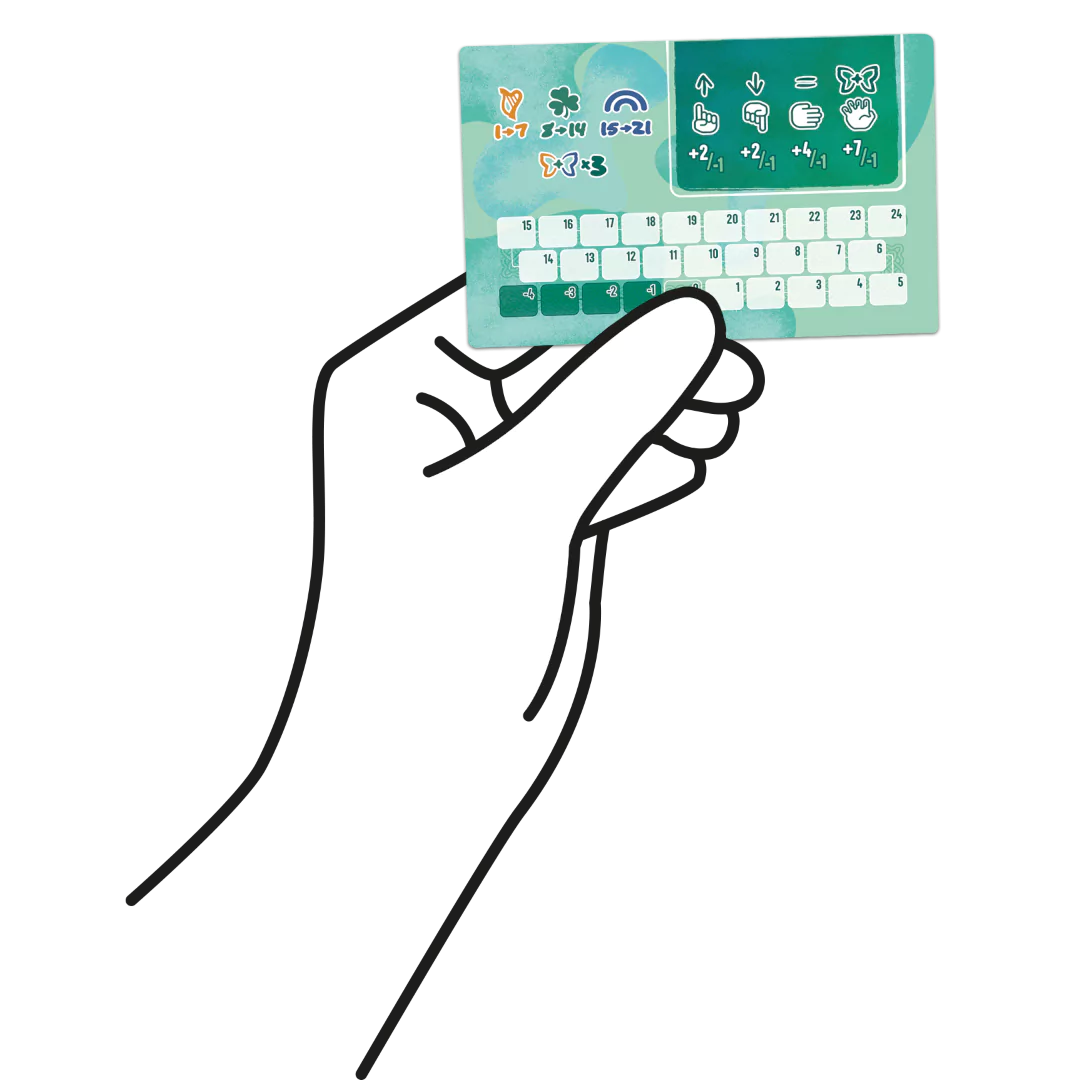 Every round, reveal a new card. Simultaneously, all players choose a hand gesture to guess how the card relates to the previous one (👆 for higher value, 👇 for lower value, 🫲 for same suit, or ✊ to guess a fairy).