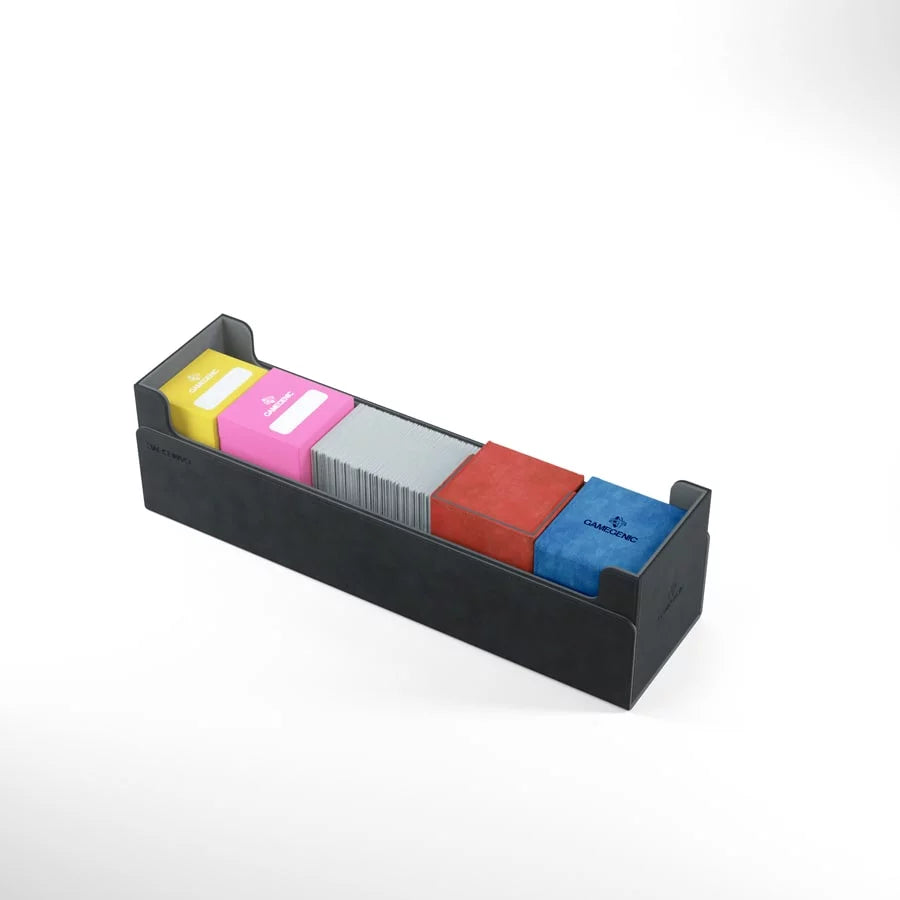 The Dungeon S 550+ is the little sibling of our very popular and highly-rated Dungeon 1100+. The one-row design is perfect to hold several deck boxes, playmats, accessories, and, of course, a huge number of single- or double-sleeved cards or cards protected in bigger Toploaders. Our Dungeon S 550+ is so compact that it even fits in most regular backpacks!