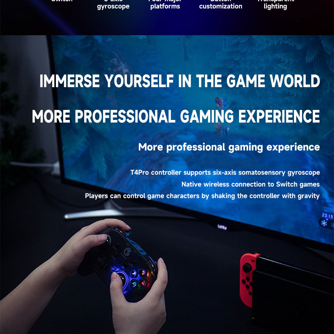 .6-Axis Motion Sensing Gyroscope: Experience gravity control by tilting the controller to maneuver game characters. Equipped with four customizable rear buttons for quick combo execution. You can program multiple buttons into a single combo for effortless gameplay..Universal Compatibility: Seamlessly connects with major gaming platforms including iOS 13 and above, Switch, PC, and Android, supporting a wide variety of games.