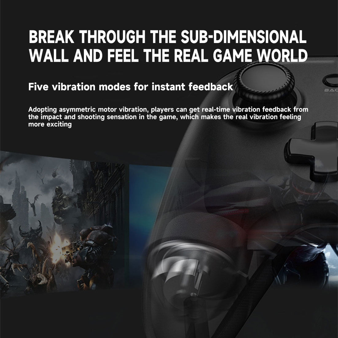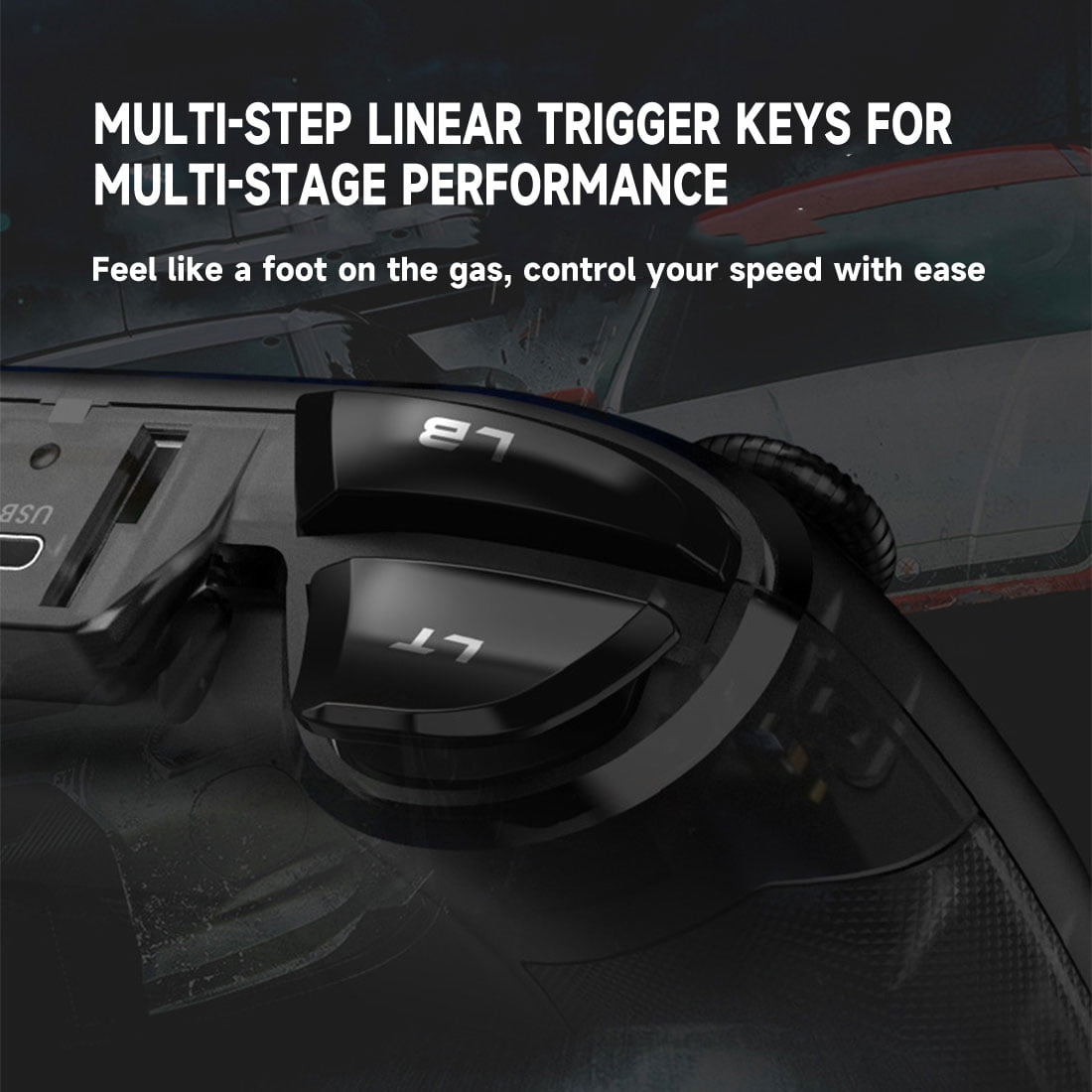 .Linear Trigger Buttons: The multi-stage linear triggers offer precise control, akin to pressing an accelerator pedal, allowing you to manage speed effortlessly. The asymmetrical vibration motors enhance the gaming experience with dynamic impact and vibration feedback in real time.