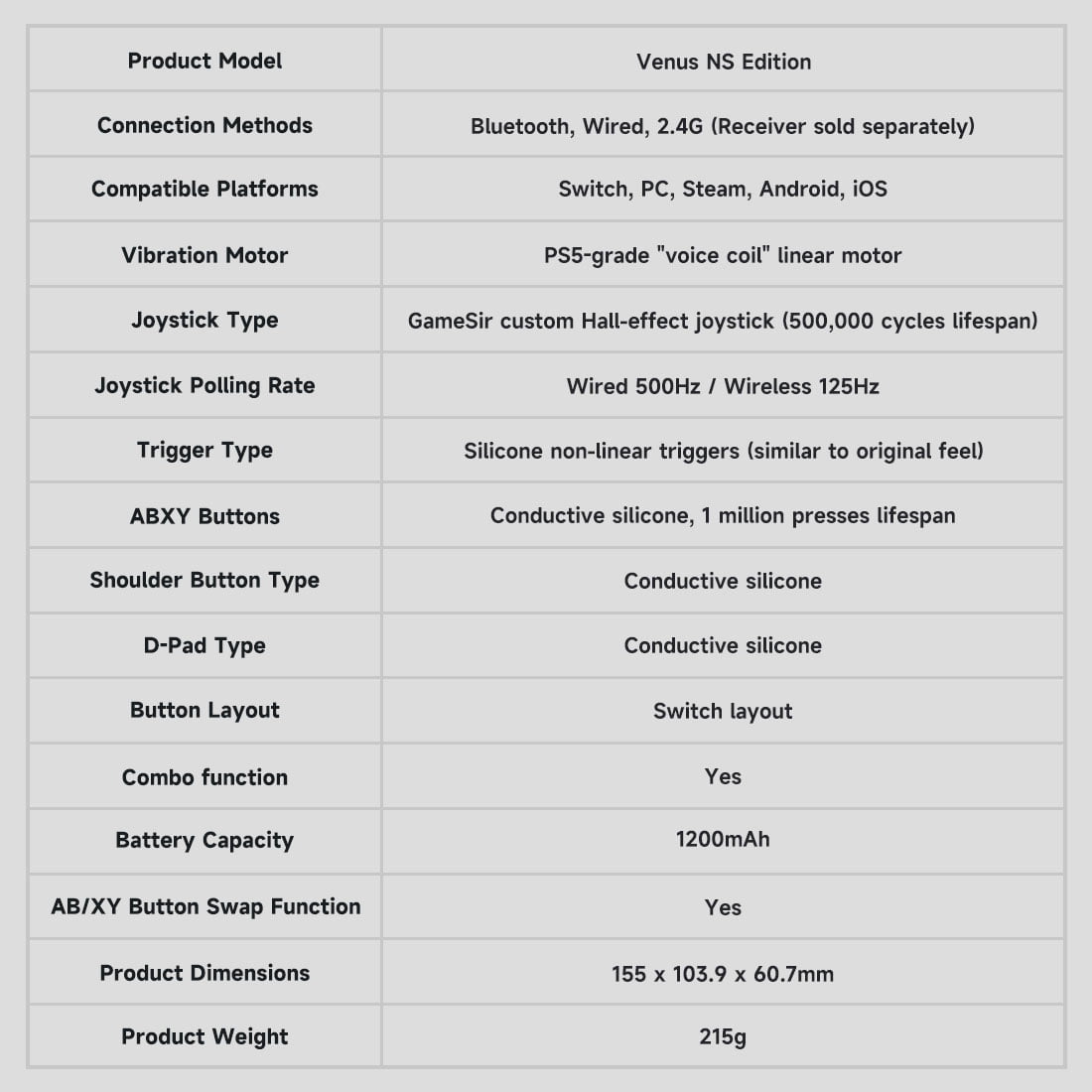 .Joystick type: GameSir custom Hall-effect joystick (500,000 cycles lifespan)