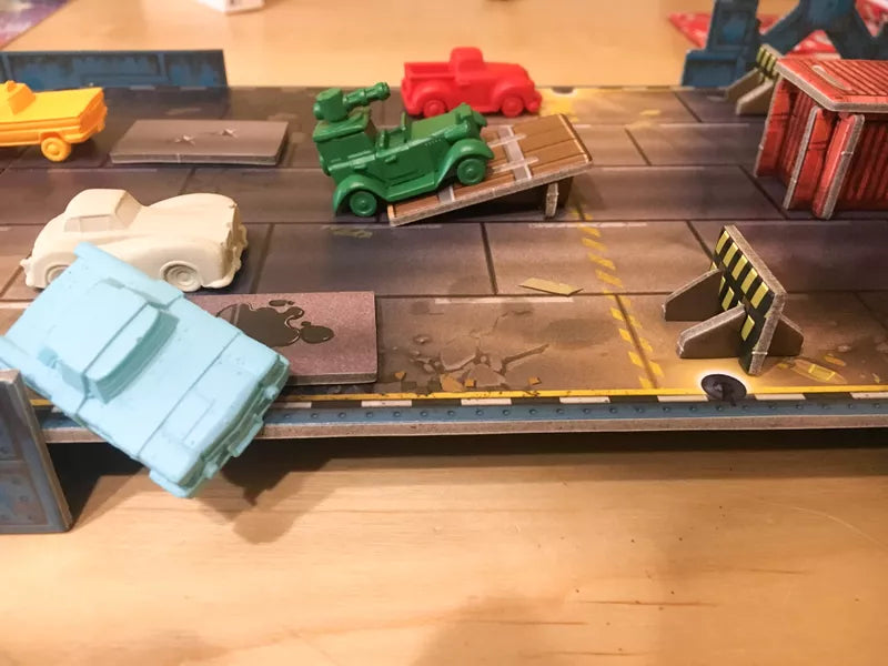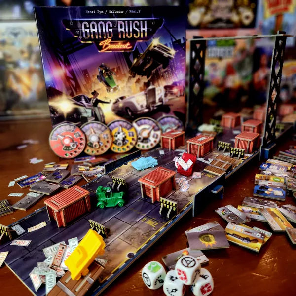 In Gang Rush, players become mafia underlings, trying to get across the border with the most loot. Hazards, like crates, cops, and barriers, will slow them down, but their souped-up cars can handle almost anything. They don’t necessarily need to win the race; they just can’t finish last!