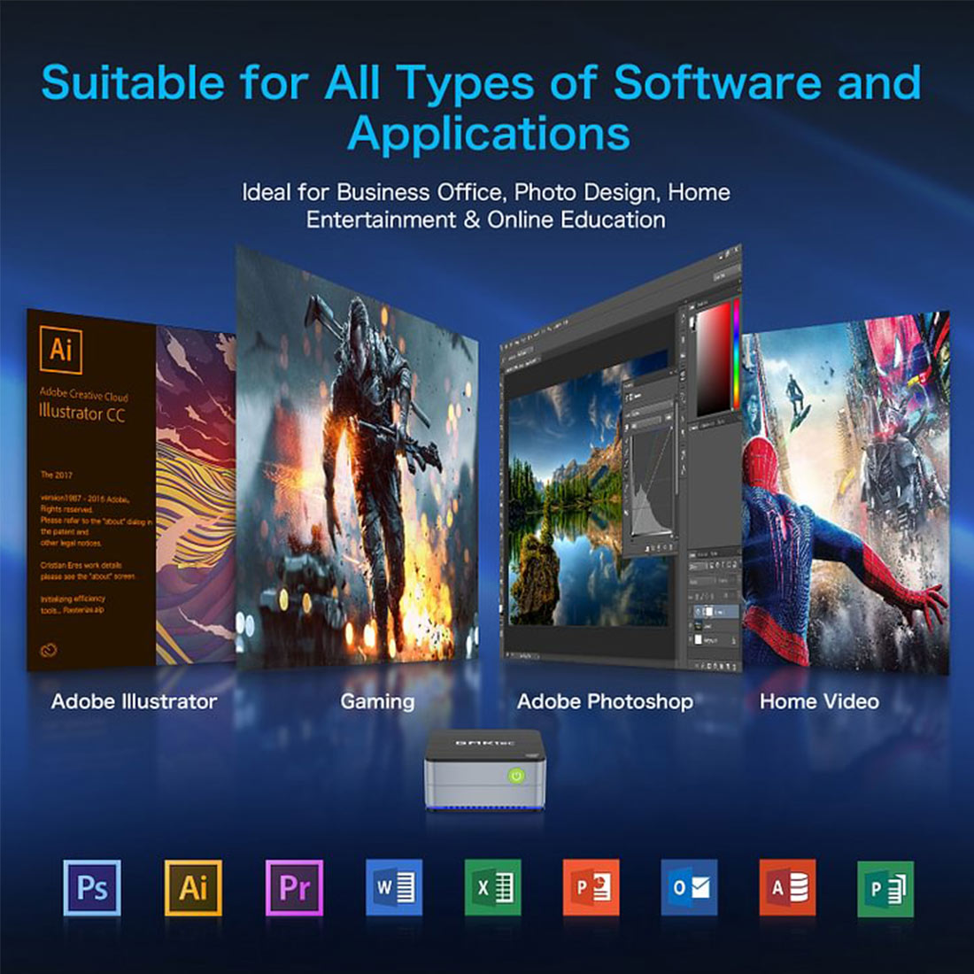 .Offers various connectivity options, USB ports, HDMI ports, Ethernet ports, and Wi-Fi for users to connect external devices and access the web. This makes the mini mainframe ideal for home entertainment centers, digital media players or smart TV boxes.