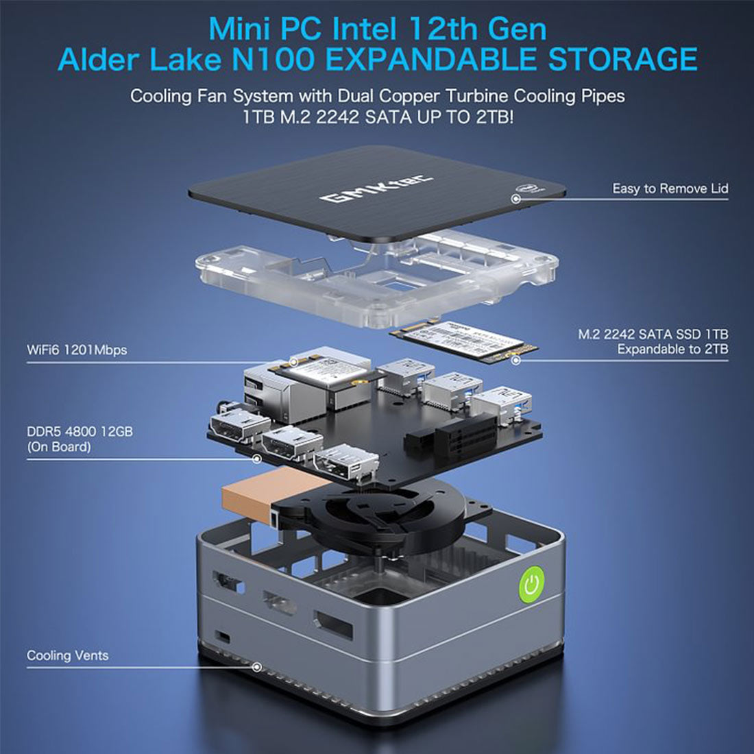.CPU: Intel 12th Alder Lake- N100, 4C/4T, 7nm, MAX3.4G, 6 MB Cache, TDP 6W