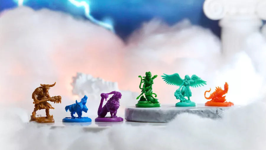 To do that, they must first uncover the monsters' lairs. Medusa, Cerberus, Chimera, and Minotaur are hidden in locations that must be discovered: the Statue Garden, Underworld Door, Chimera's Cave, and Labyrinth. Similar to the myths that inspired the game, uncovering the lairs comes with a cost: Players must discard three color items before the lair token can be flipped over to reveal which monster's hideout they've discovered.
