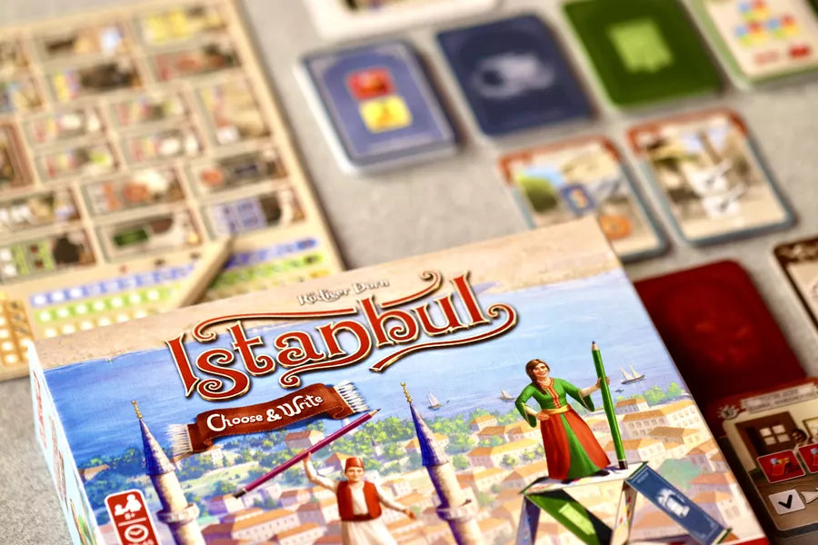 Fans of the Istanbul game series will recognize familiar locations in Istanbul: Choose & Write, such as the Large Market and the Gemstone Dealer. However, thanks to the innovative choose-and-write mechanism, this visit to the bazaar will challenge players in a completely new way.