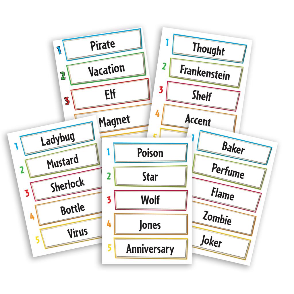 Every turn, give the guesser just one clue—choose the best word to help your teammate, but get creative, because all identical clues will be canceled out!