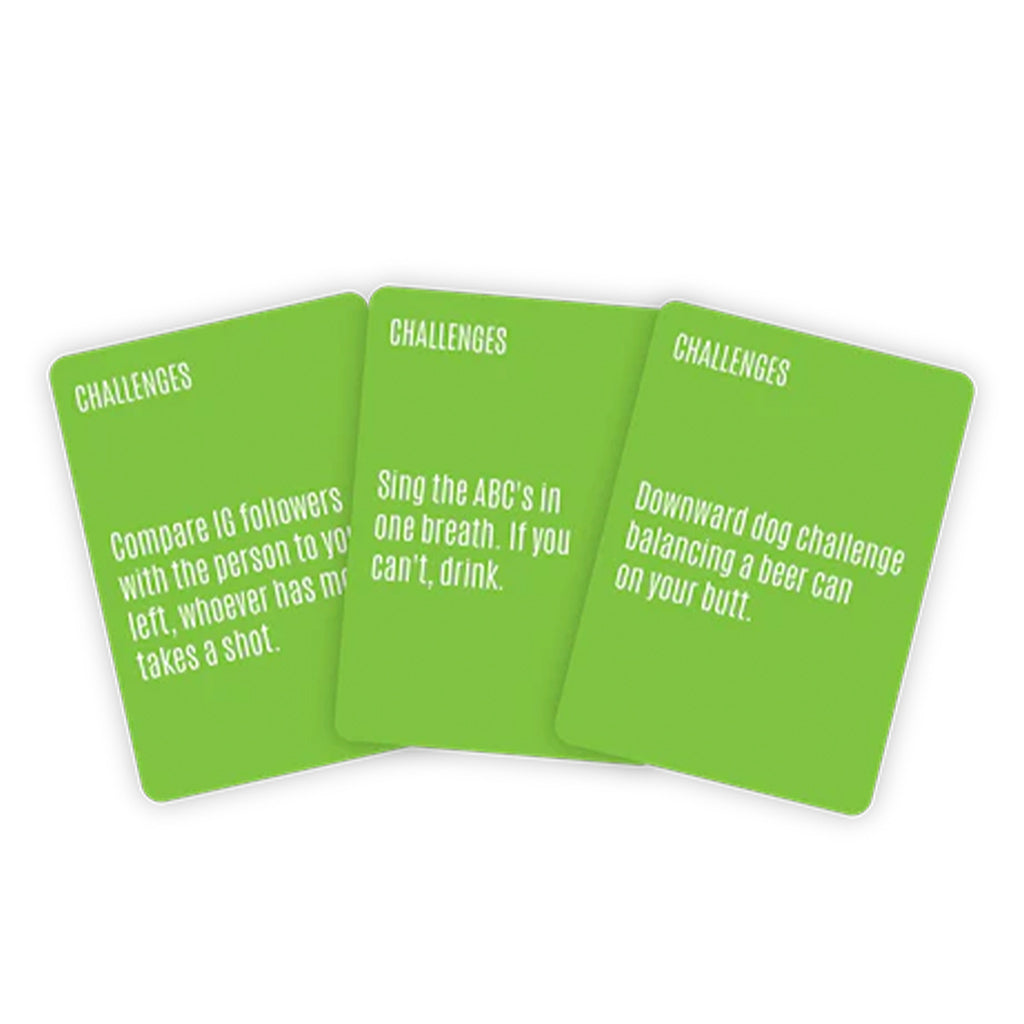 Made for Millennial & Gen Z. Designed for fast paced, turn up nights Effortless fun, drinking nights. Written by top comedians who like to party!-Game built of 7 mini games, including: Dares, Truths, Call Outs, Never Have I Ever, Would You Rather?, Categories