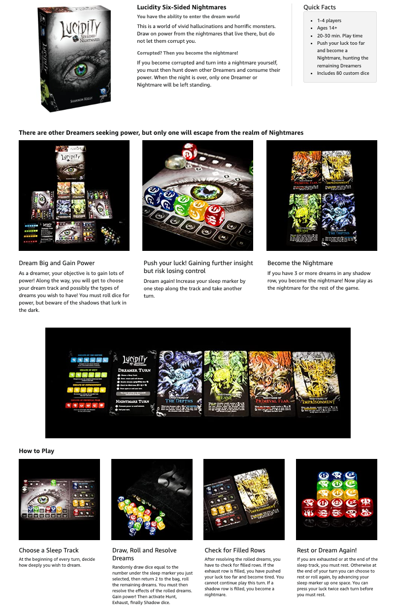 You have the ability to enter the dream world: a world of vivid hallucinations and horrific monsters. Draw power from the Nightmares that live there, but do not let them corrupt you. For there are other Dreamers seeking power this night, and there is only room for one to escape from the realm of Nightmares.