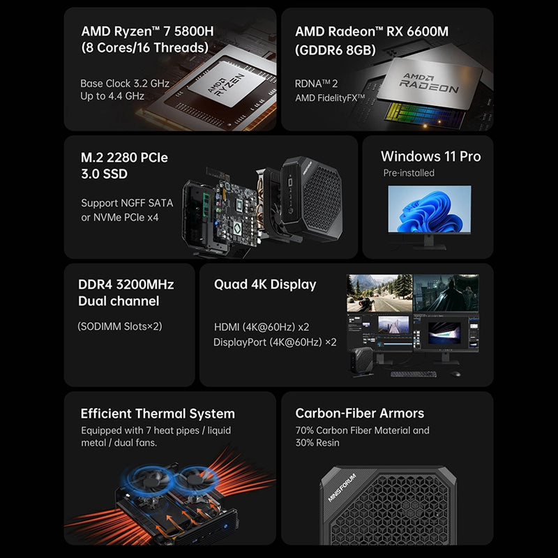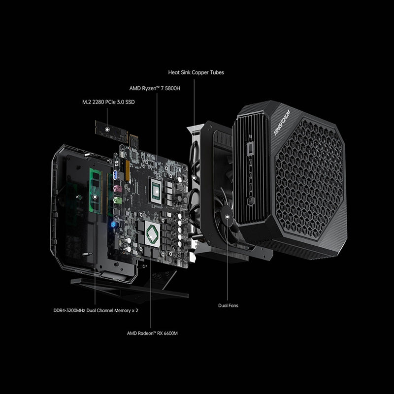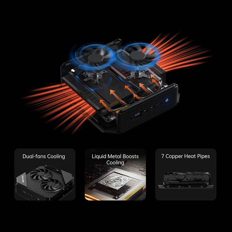 .[Powerful Gaming Performance] The brand-new RDNA2 architecture, combined with efficient 7nm technology, features 1792 independent stream processors for high frame rate gaming. With 8GB of dedicated memory to ensure smooth creation and direct output. Come with a built-in graphics card, making it a compact gaming console..[Efficient Cooling for Better Performance] Both the CPU &GPU adopt liquid metal cooling, and the entire system incorporates a design with 7 heat pipes for improved thermal management.