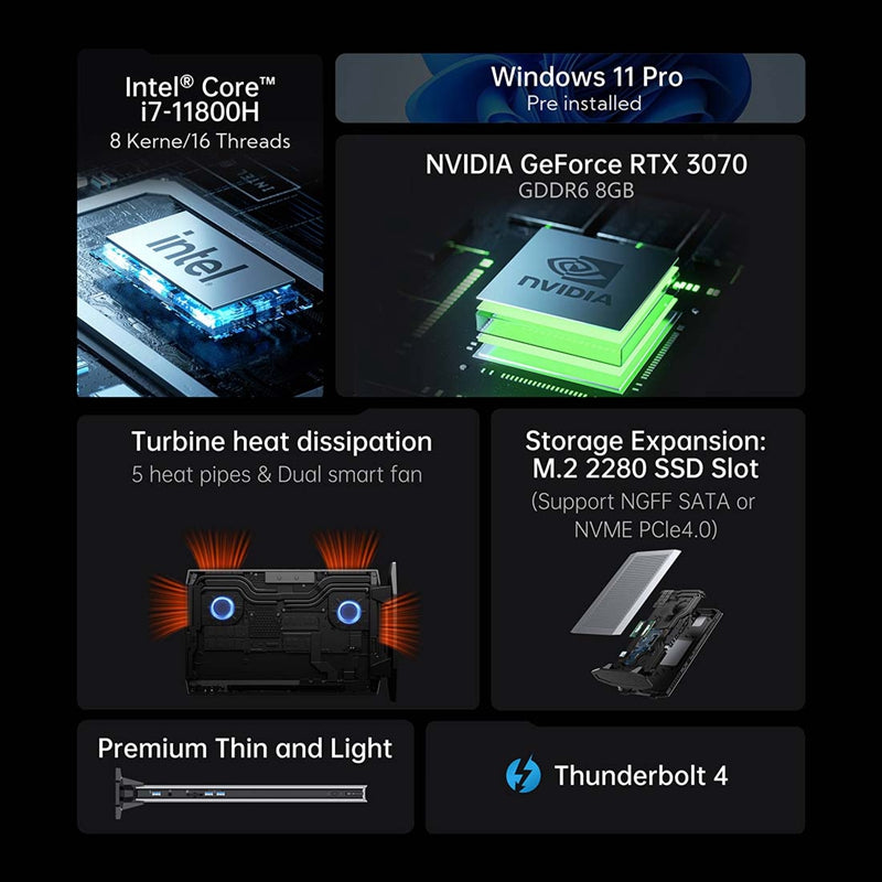 .Ports & Buttons: RJ45 2.5 Gigabit Ethernet Port ×1, HDMI (4K@60Hz)×1, Thunderbolt 4(8K@60Hz)×1, USB3.2 Type-A ×3, 3.5mm combo Jack×1, SD Card Slot x1