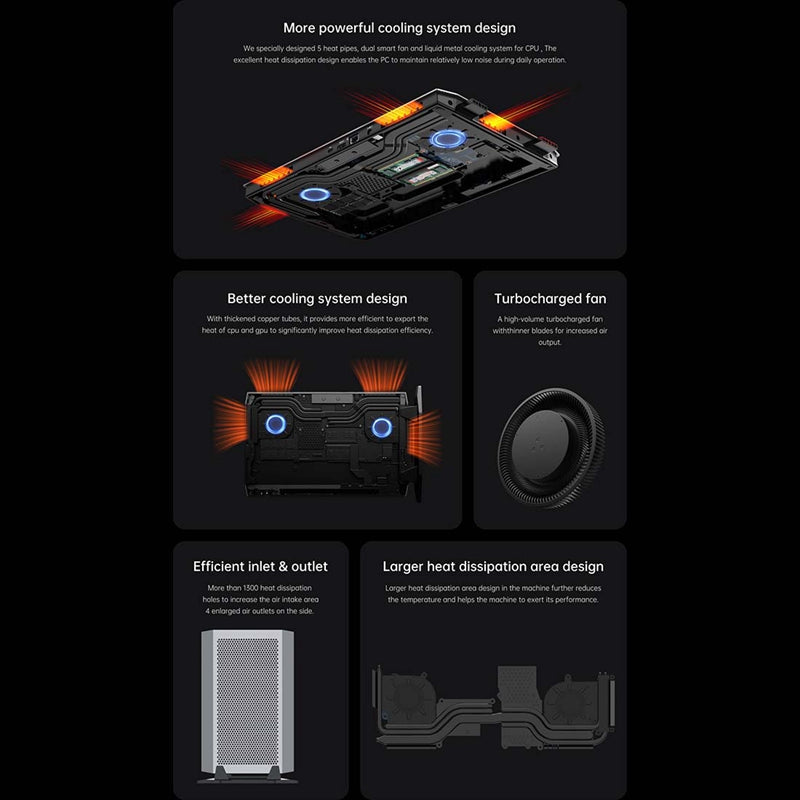 .Reinforced Heat Dissipation for Energy Efficiency: Powerful copper tube thermal conductivity technology, large airflow turbocharged fan, and efficient all-zone inlet & outlet air system provide a large total cooling area.