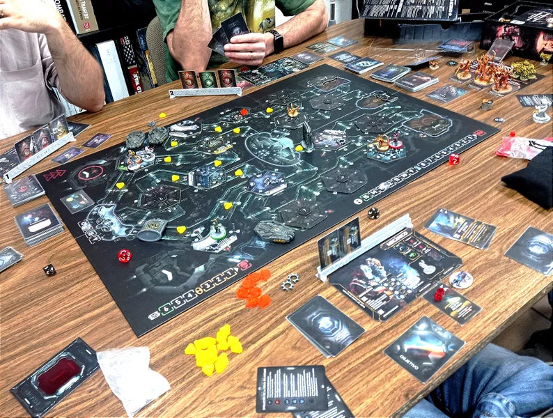 Playing Nemesis will take you into the heart of sci-fi survival horror in all its terror. A soldier fires blindly down a corridor, trying to stop the alien advance. A scientist races to find a solution in his makeshift lab. A traitor steals the last escape pod in the very last moment. Intruders you meet on the ship are not only reacting to the noise you make but also evolve as the time goes by. The longer the game takes, the stronger they become. During the game, you control one of the crew members with a unique set of skills, personal deck of cards, and individual starting equipment. These heroes cover all your basic SF horror needs. For example, the scientist is great with computers and research, but will have a hard time in combat. The soldier, on the other hand...