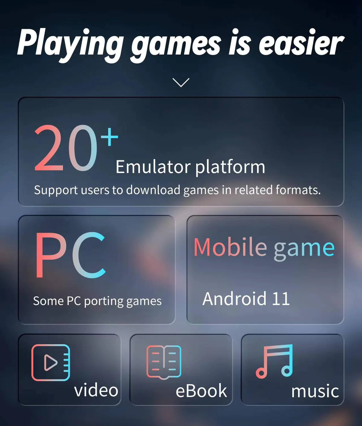 .Processor: Powered by RK3566 Quad-core 64-bit Cortex-A55, 1.8GHz, smoothly runs various retro games.
