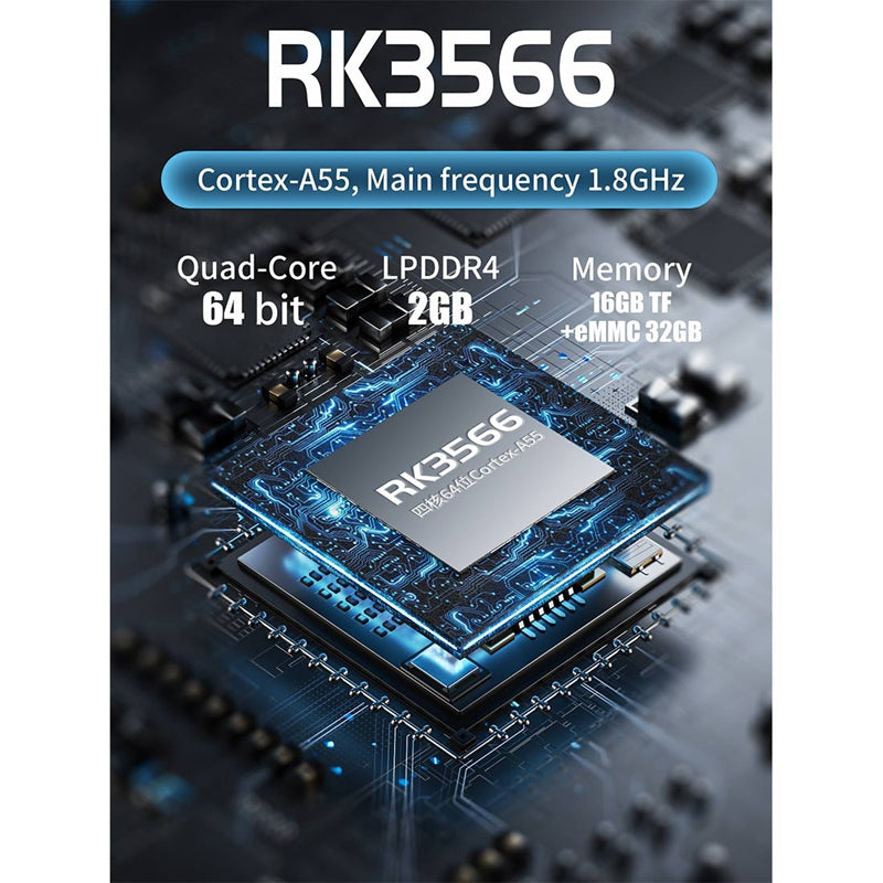 .CPU: RK3566 Quad-core 64-bit Cortex-A55, 1.8GHz