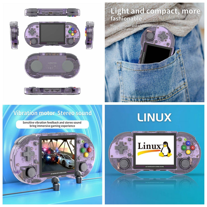 1. 3.5-inch IPS screen: 3.5-inch high-definition IPS screen, the screen picture is clear, and the gaming experience is excellent. The complimentary tempered film is scratch-resistant and drop-resistant.2. Upgrade chip: The game console adopts RK3566 quad-core 64-bit Cortex-A55 chip, which can solve the problem of frame loss in the game, run the game perfectly, and make the game screen smoother.