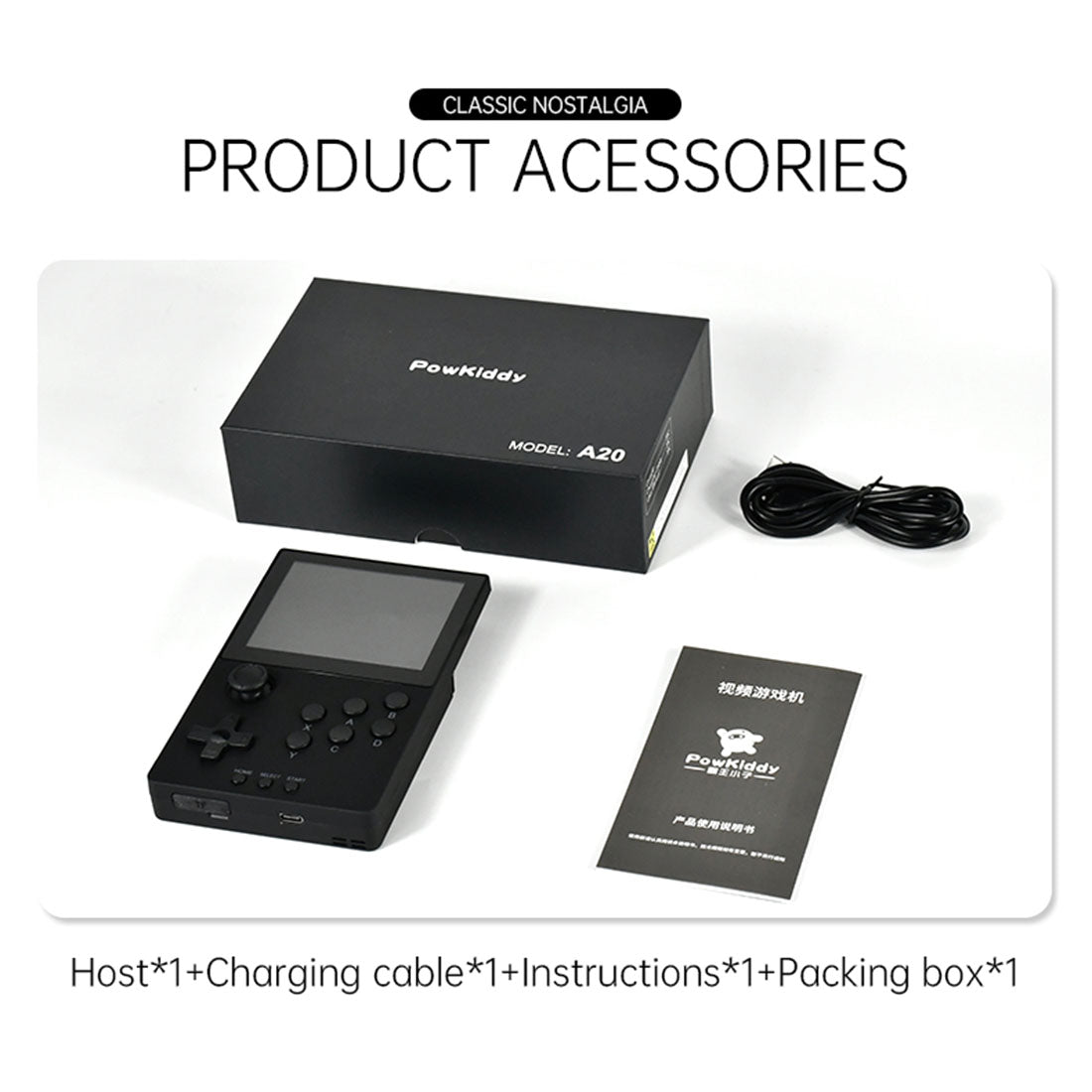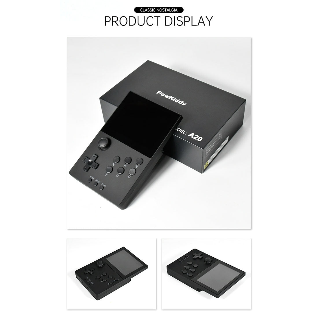 🎮Experience retro gaming in style with the POWKIDDY A20 Nostalgic Retro Handheld Game Console.