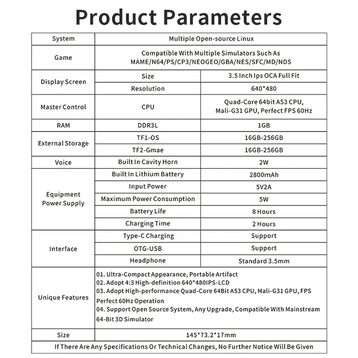 .Crisp 3.5-Inch IPS Display: Enjoy a compact yet stunning gaming experience with the 3.5-inch full-lamination IPS screen, featuring a 4:3 aspect ratio and 480*320 resolution for clear and vibrant visuals.